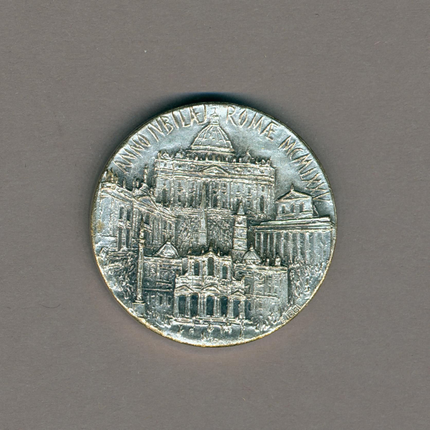Pauspenning paus Paulus VI (1963-1978) met Christus en twee jongens die elkaar de hand schudden en "Ut unum sint", kz. gebouwen te Rome