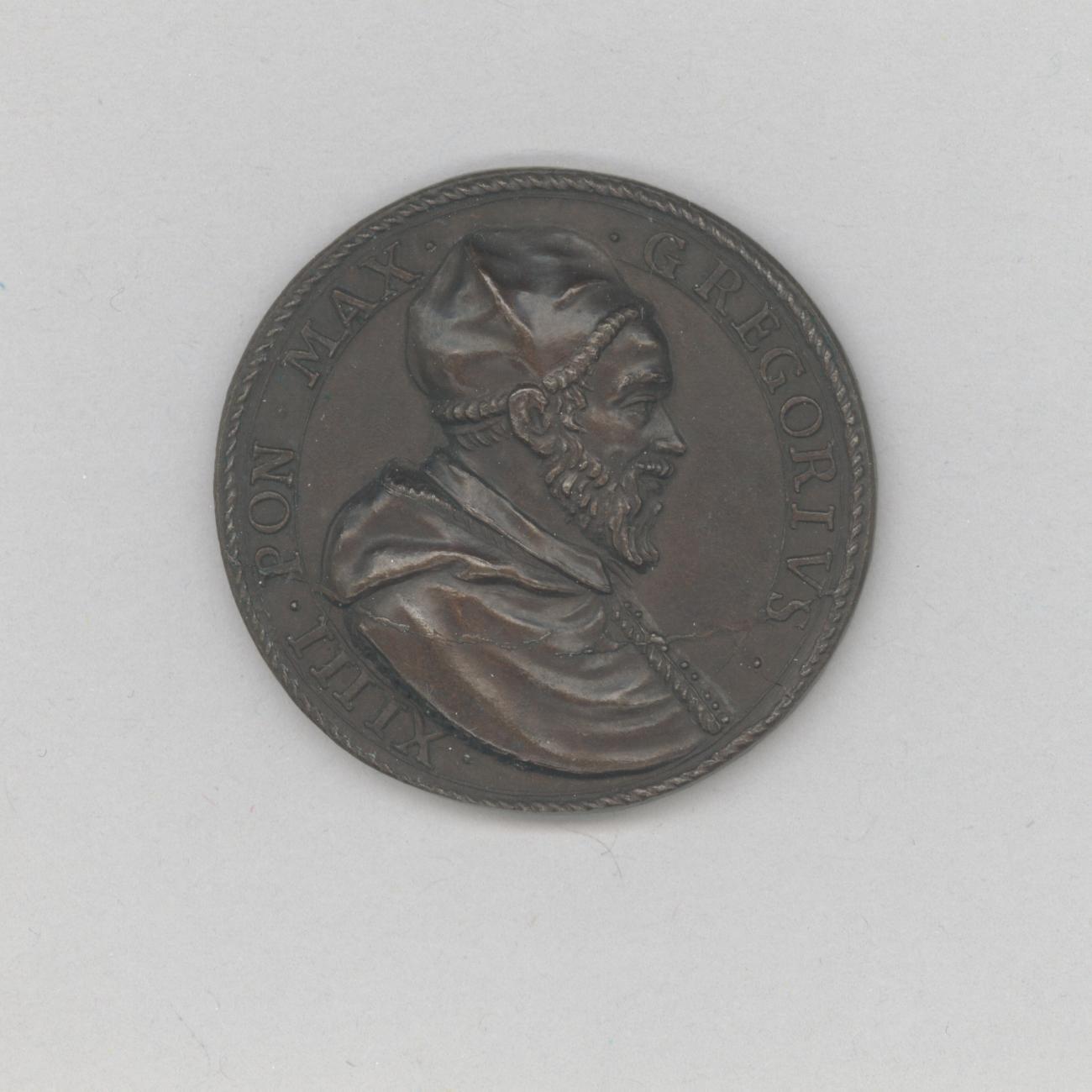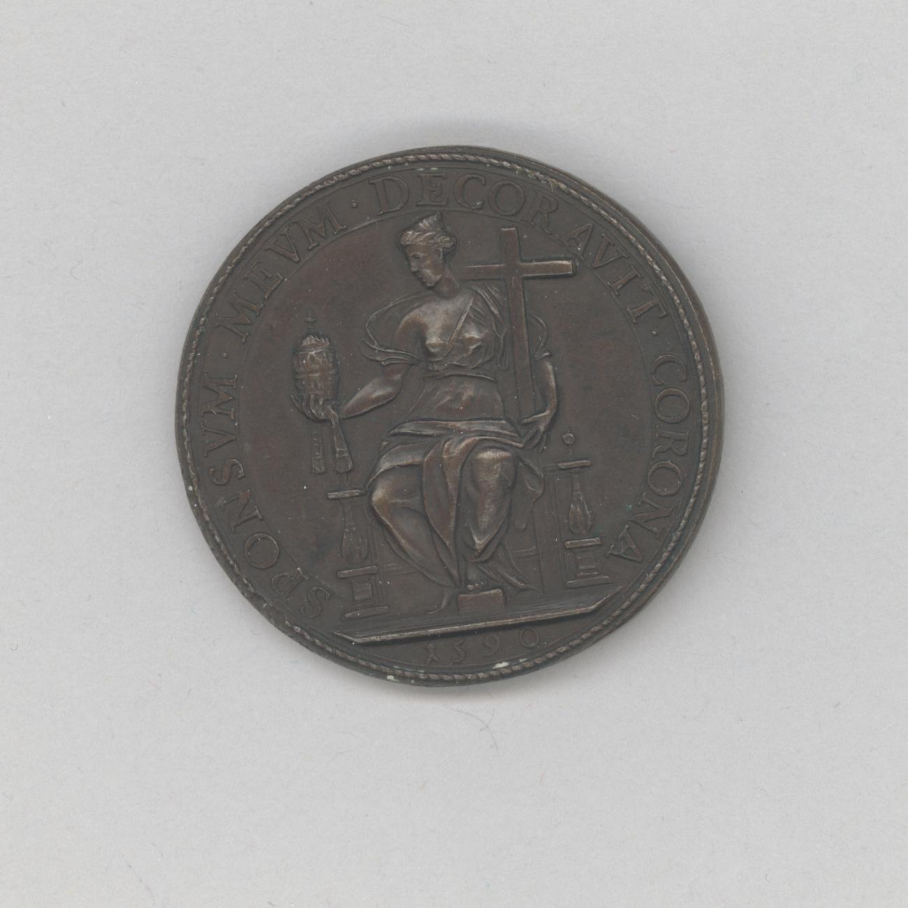 Pauspenning met portret paus Gregorius XIV (1590-1591), kz. personificatie van geloof met kruis en tiara