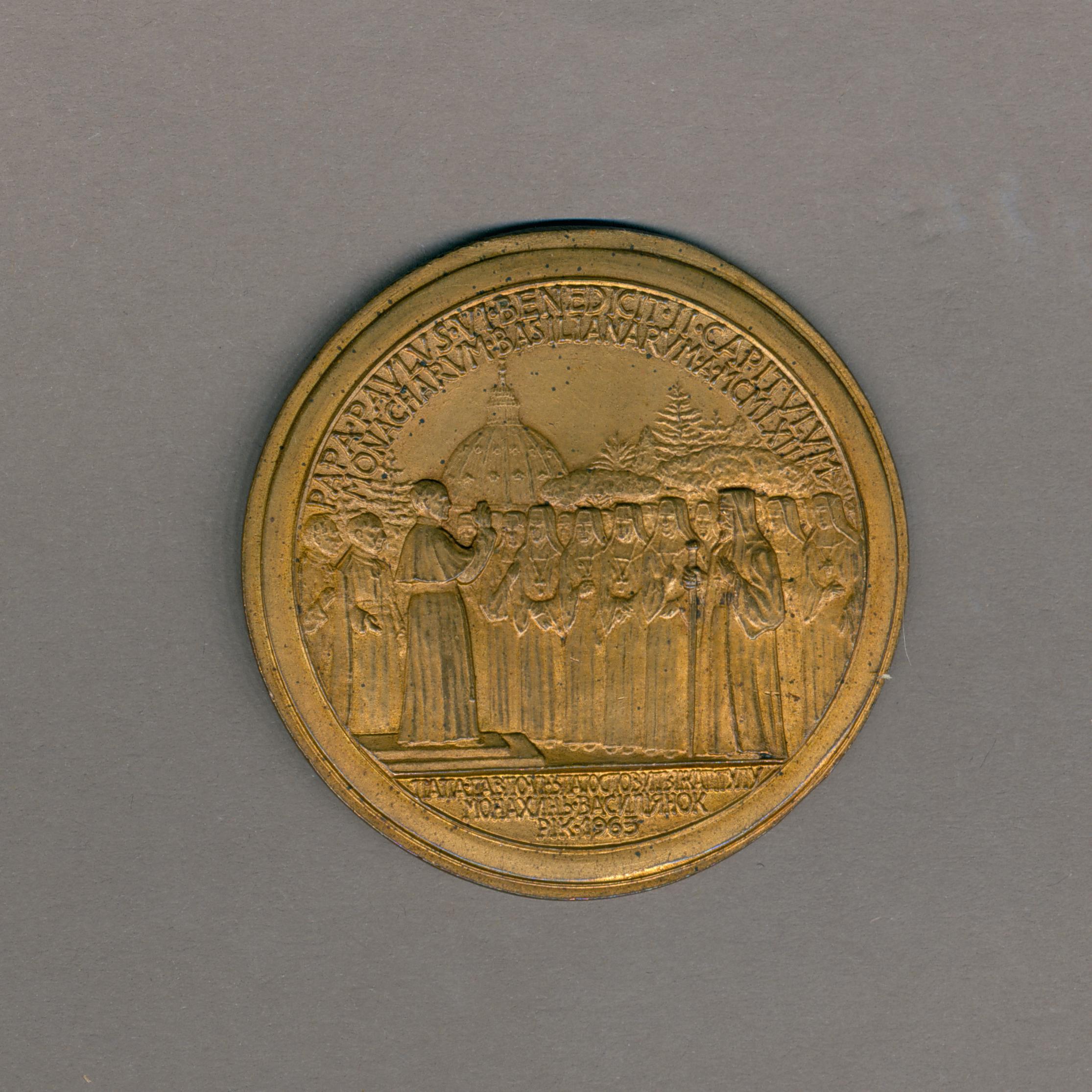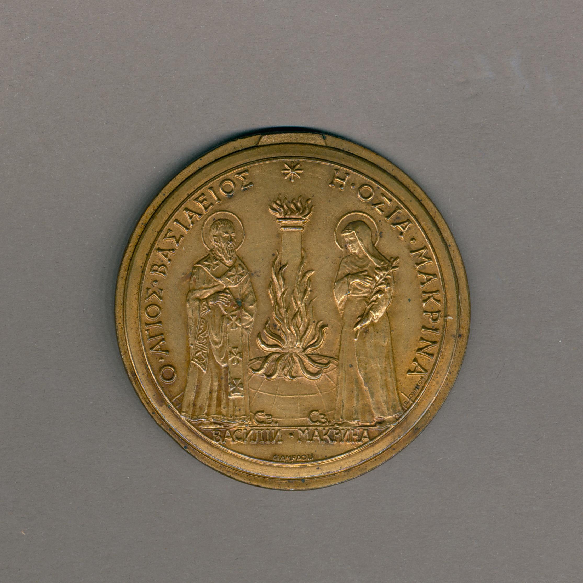 Pauspenning paus Paulus VI (1963-1978), paus spreekt, toehoorders, kz. Basilius en Macrina bij vuur