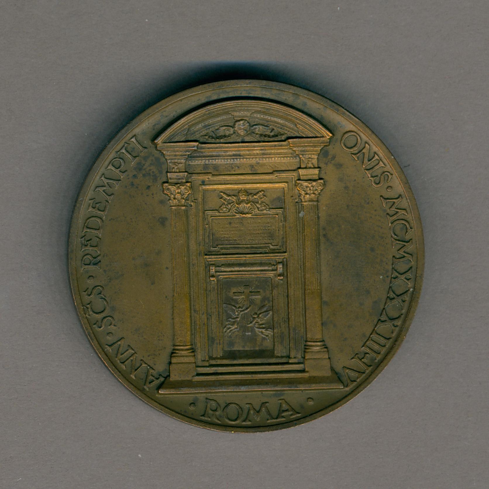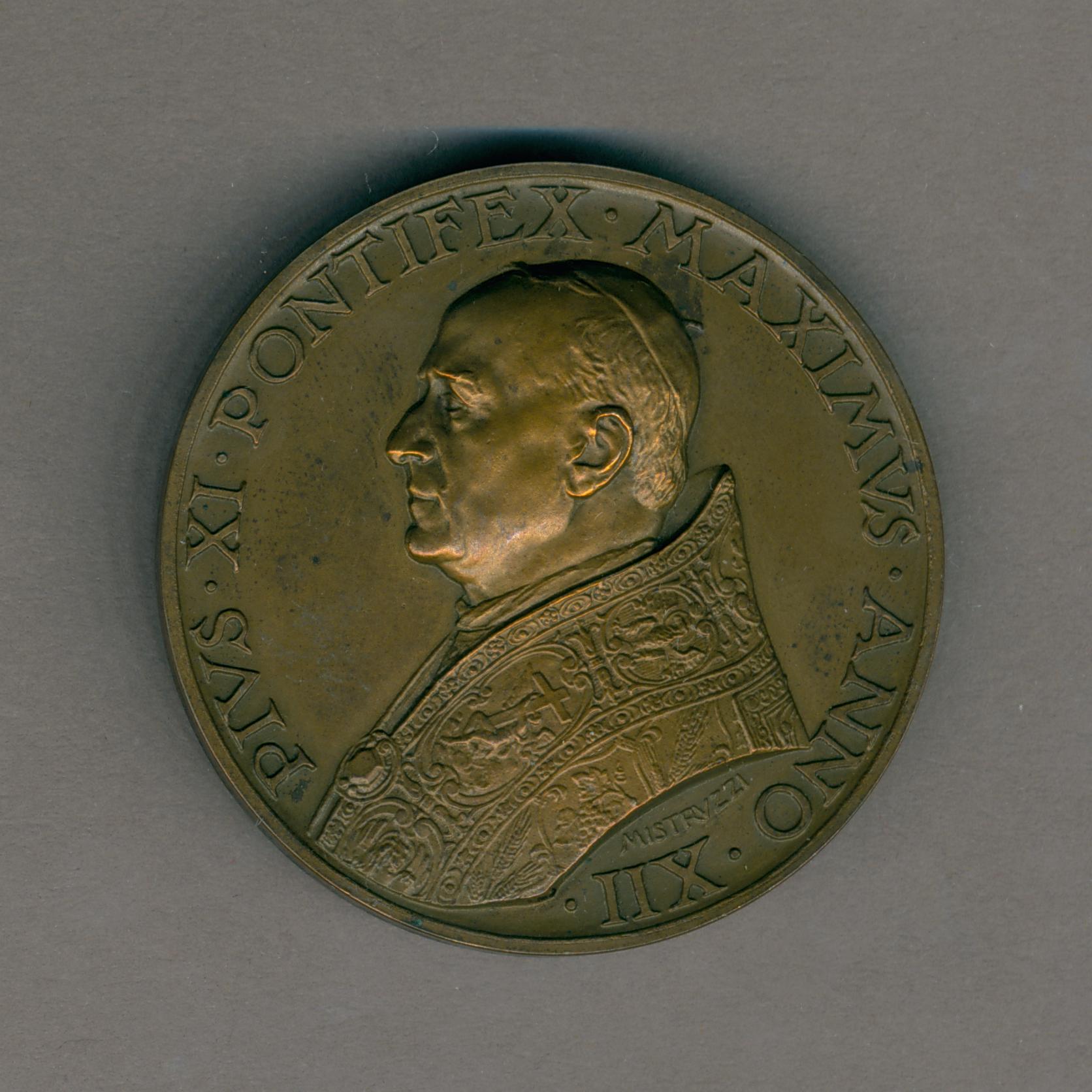 Pauspenning met portret paus Pius XI (1922-1939), met "... ANNO XII", kz. H. deur