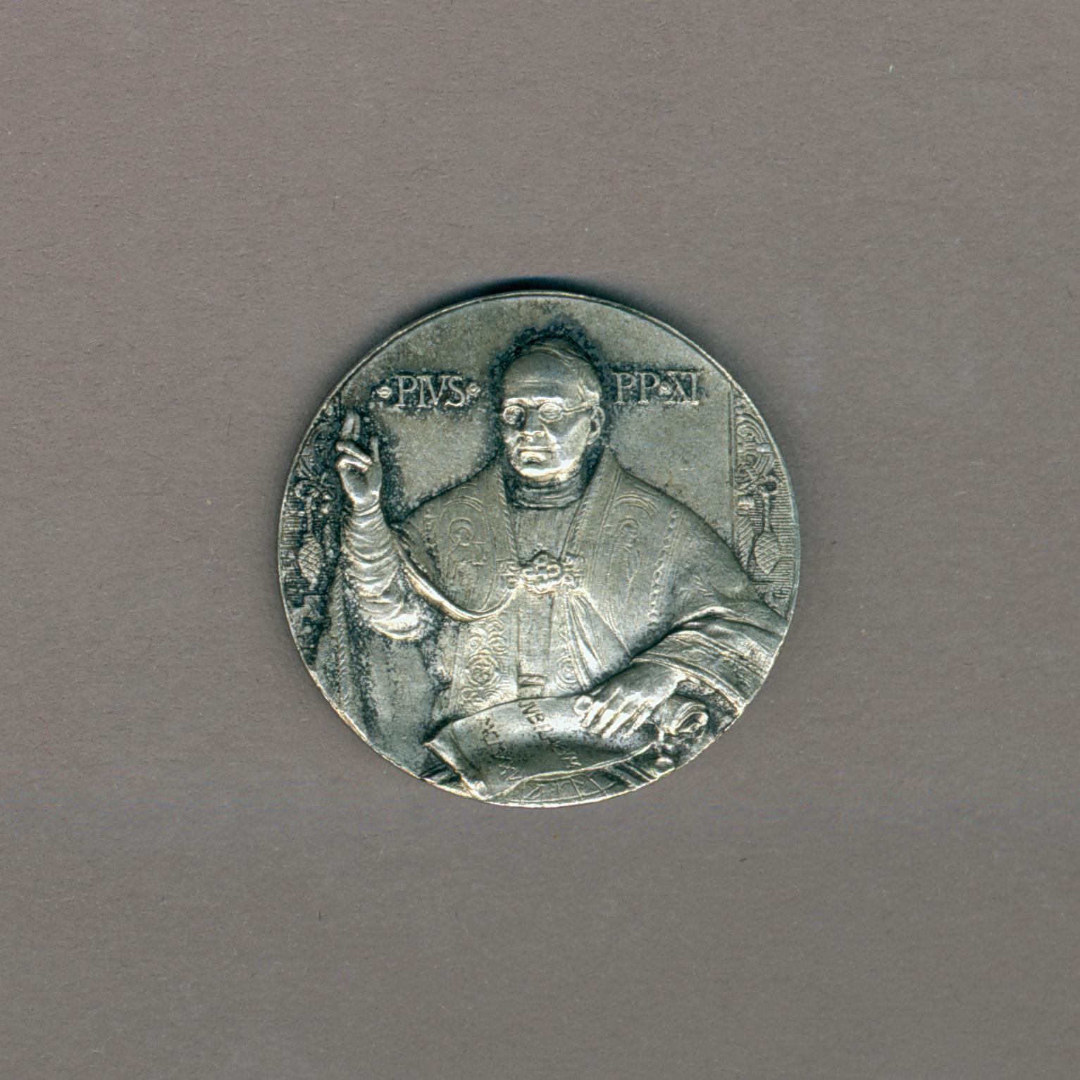 Pauspenning met portret paus Pius XI (1922-1939), kz. koepel St. Pieter