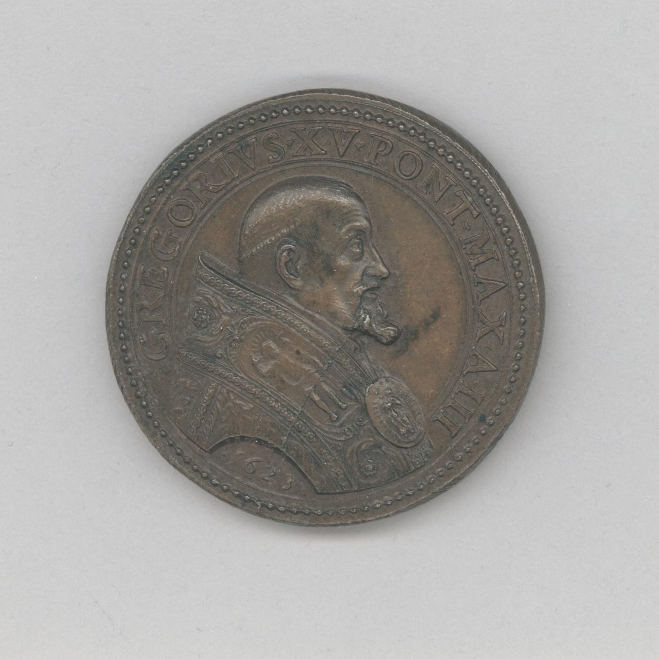 Pauspenning met portret paus Gregorius XV (1621-1623), met "... A III", kz. heiligverklaring door de paus