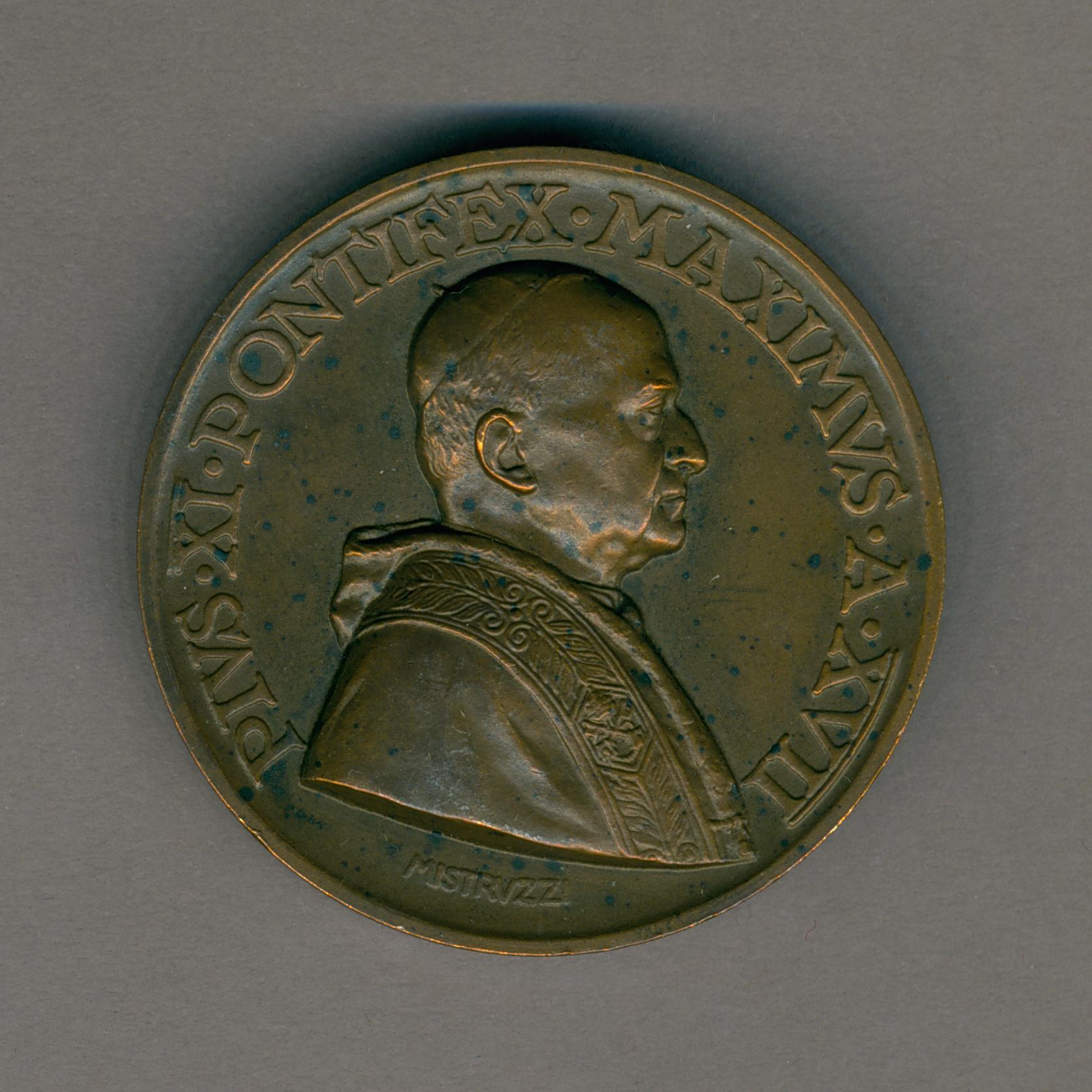 Pauspenning met portret paus Pius XI (1922-1939), met "... A XVII", kz. Pauselijke Lateraanse Universiteit