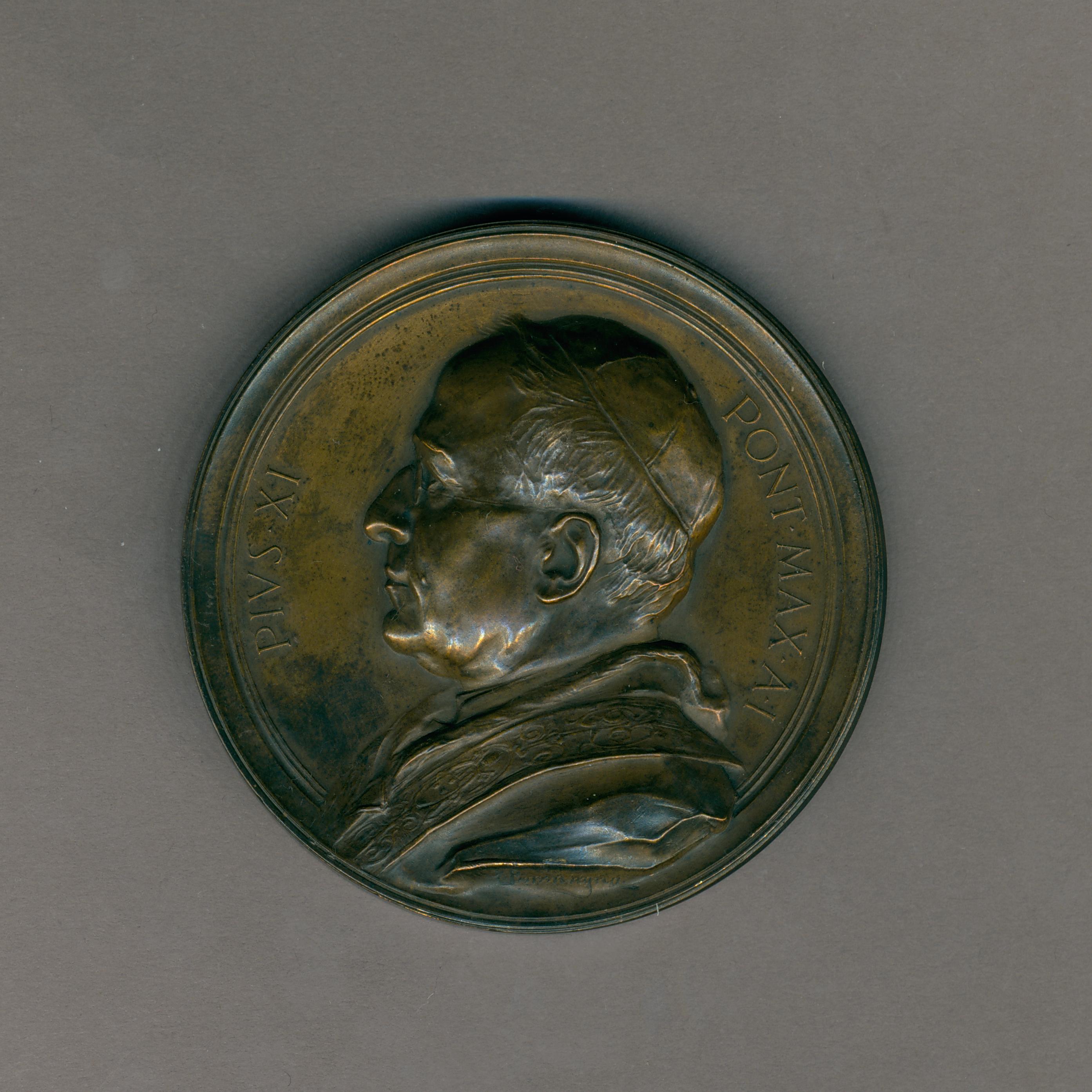 Pauspenning met portret paus Pius XI (1922-1939), met "... A I", kz. de Goede Herder