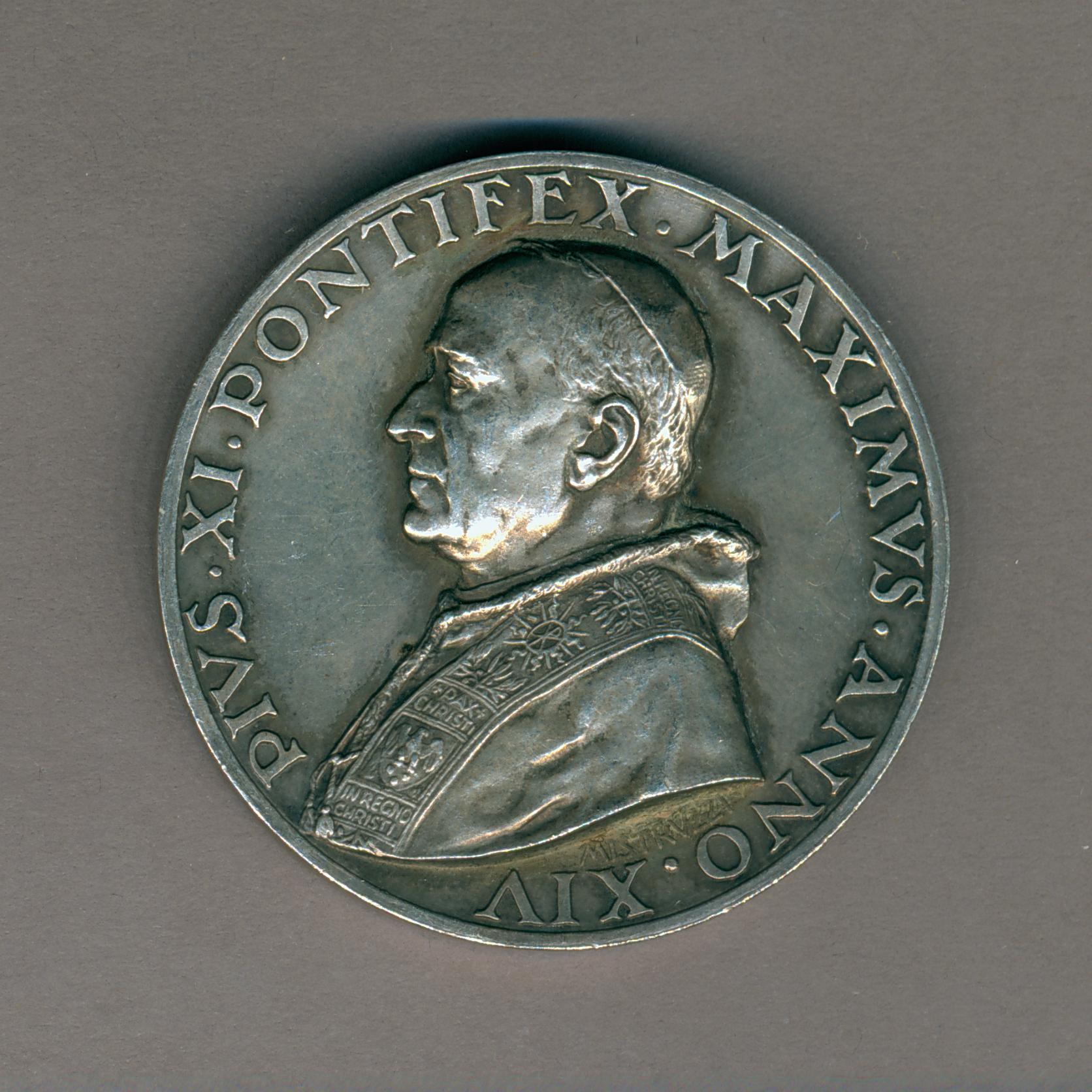 Pauspenning met portret paus Pius XI (1922-1939), met "... ANNO XIV", kz. buste Thomas More, John Fischer