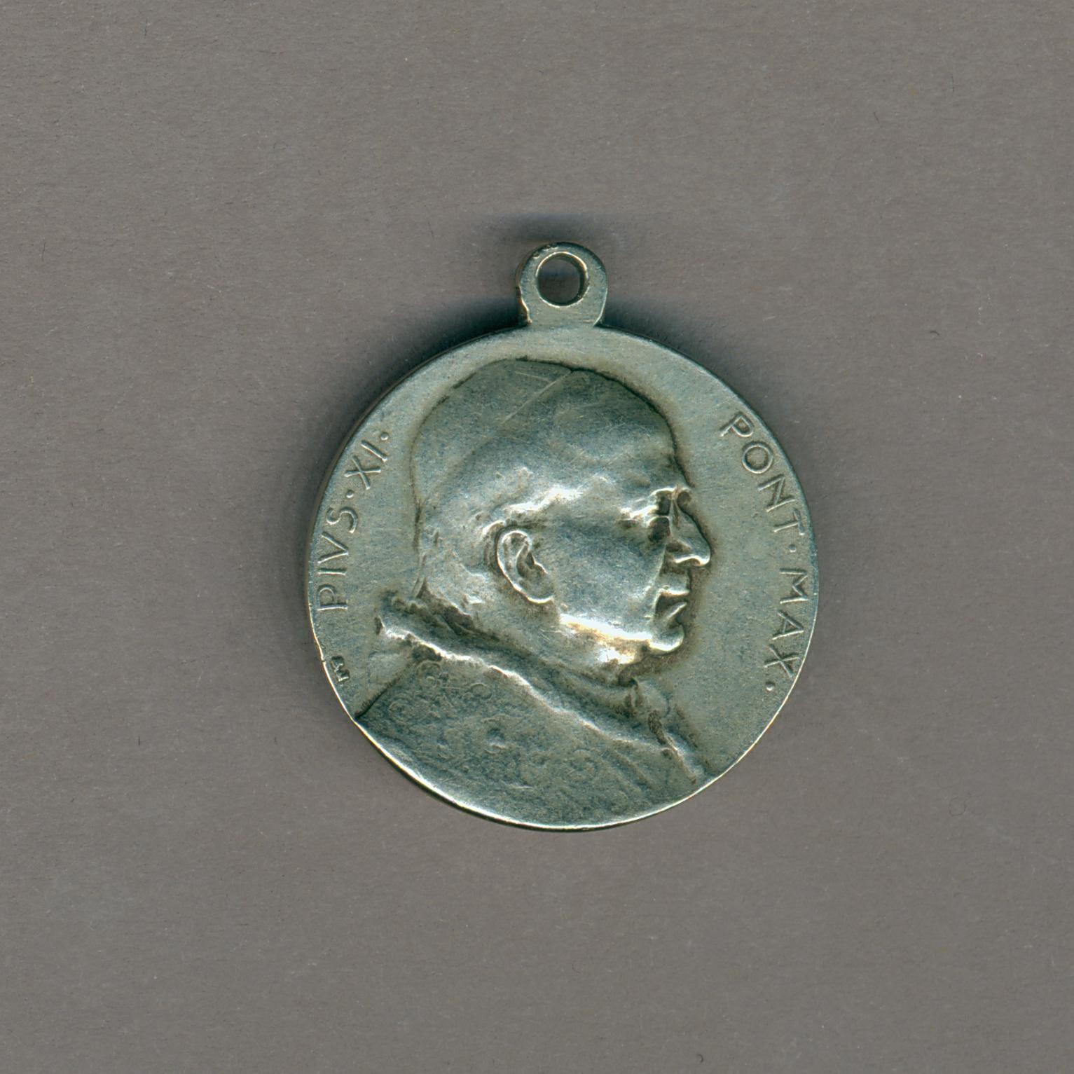 Draagpenning met portret paus Pius XI (1922-1939), kz. heilige met kind