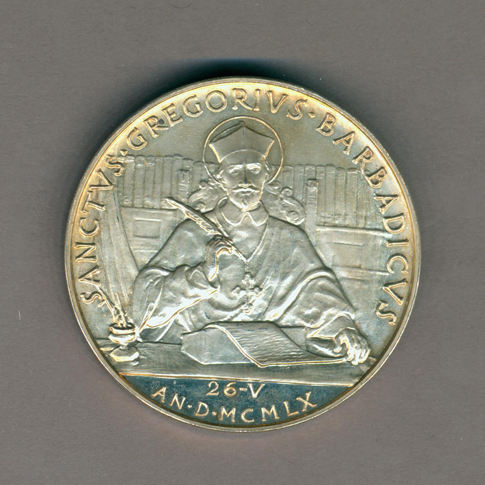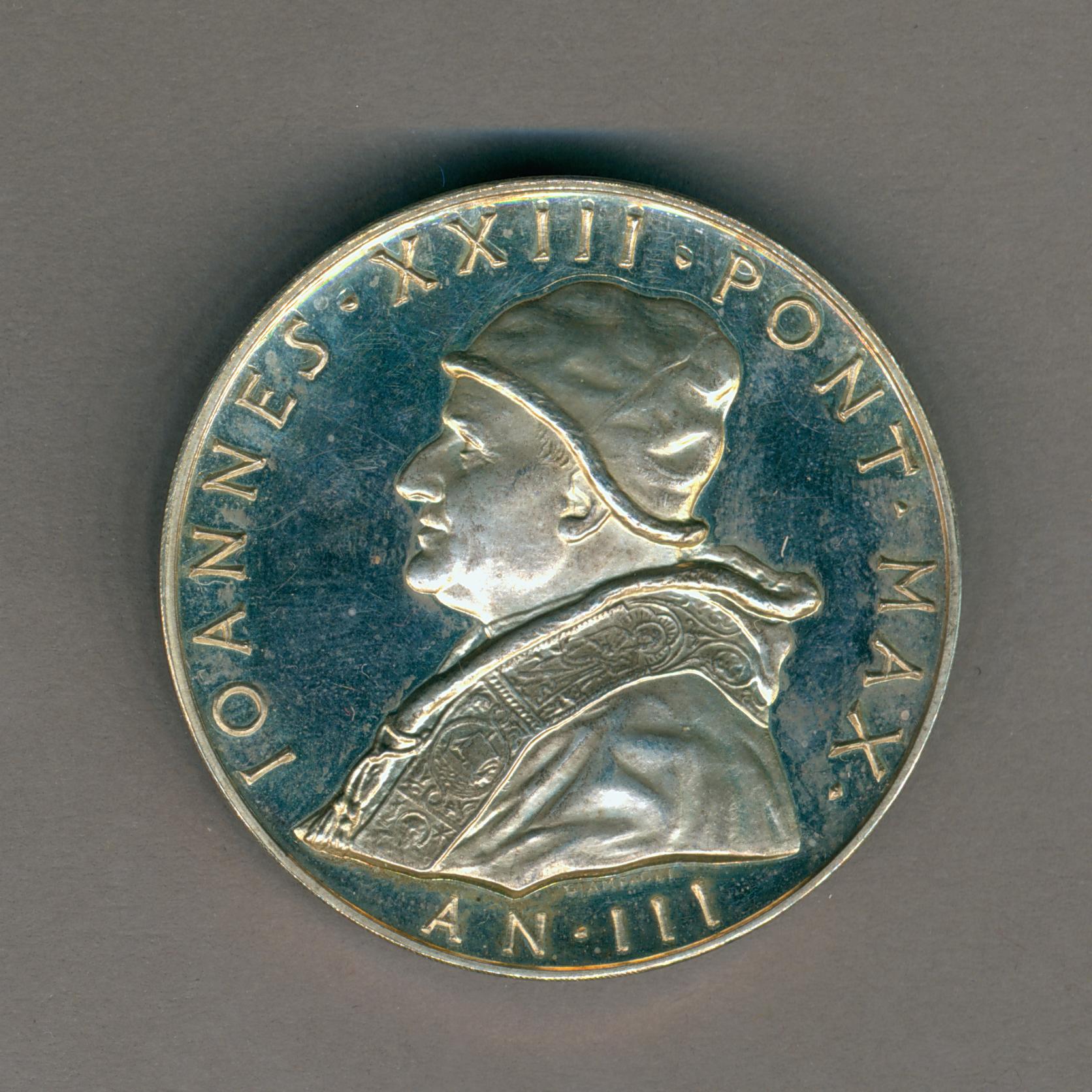 Pauspenning met portret paus Johannes XXIII (1958-1963), met "... AN III", kz. Gregorio Barbarigo zittend achter bureau