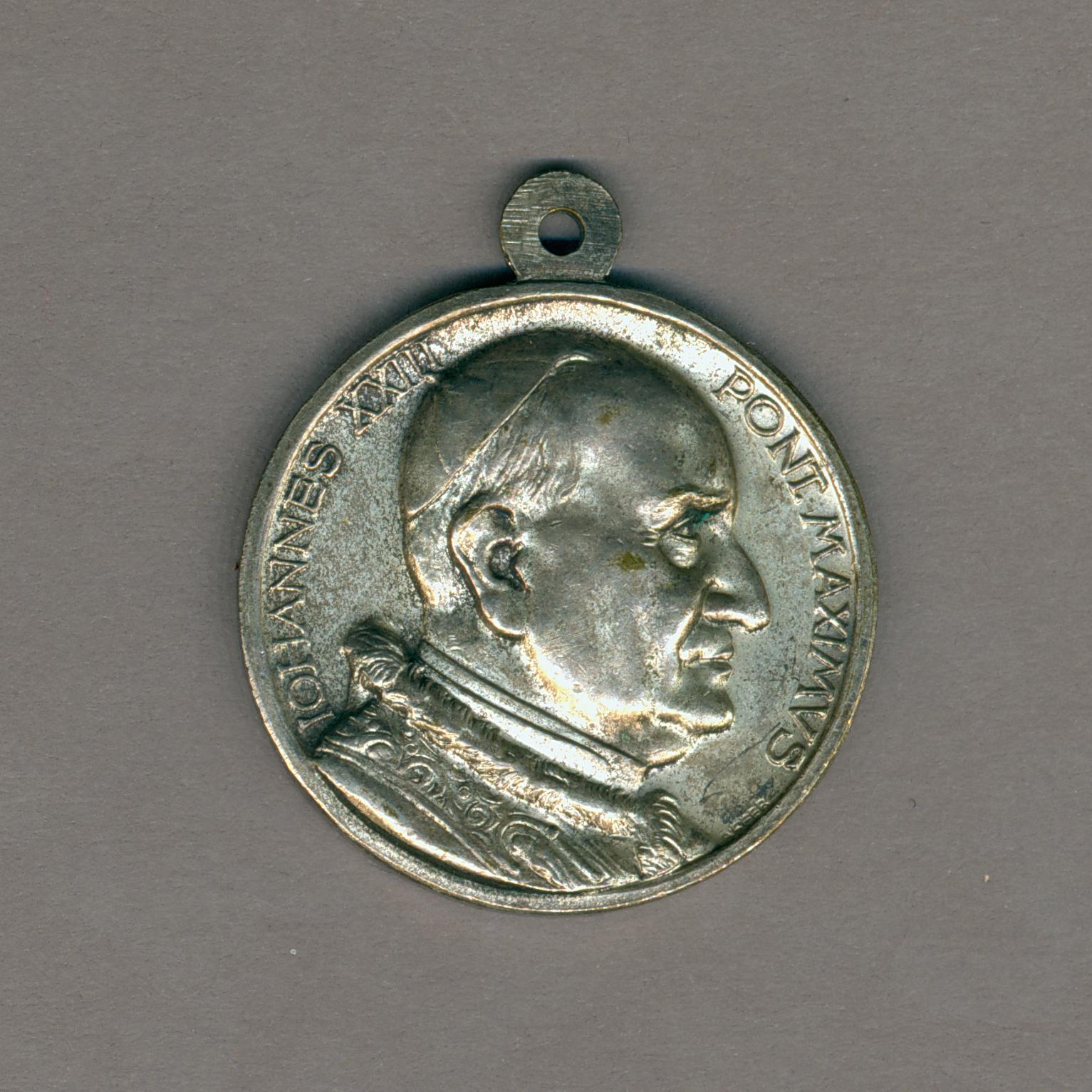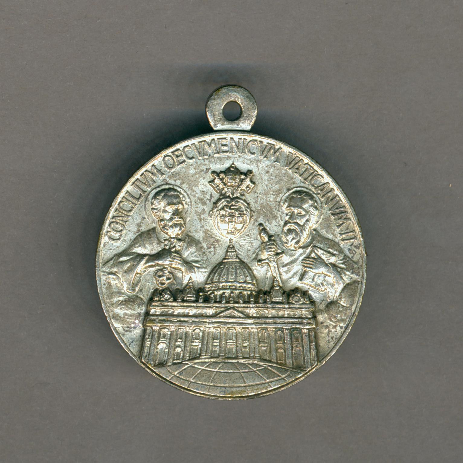 Draagpenning t.g.v. Tweede Vaticaans Oecumenisch Concilie met portret paus Johannes XXIII (1958-1963), kz. Petrus, Paulus, St. Pieter basiliek, pauselijk wapen, tekst