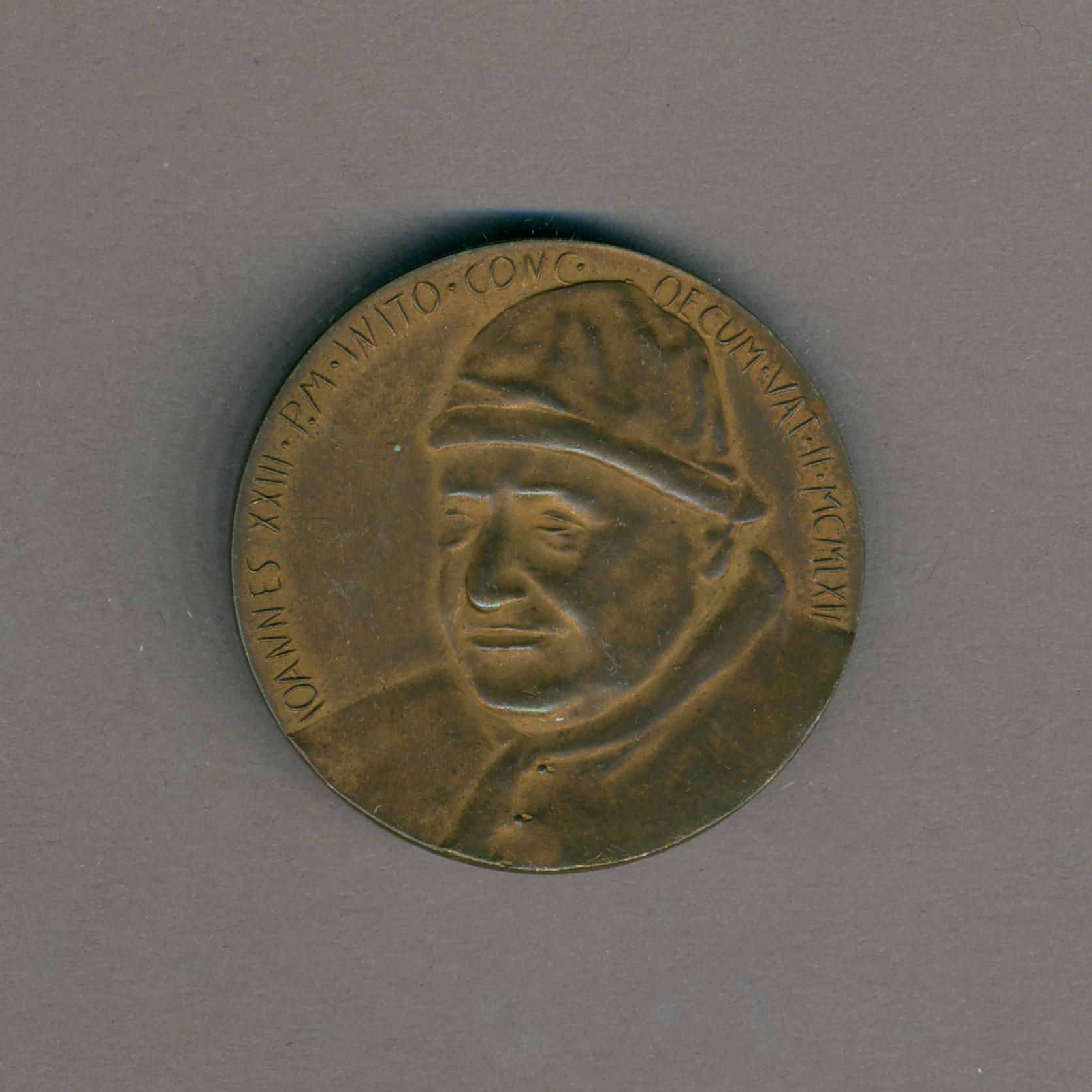 Pauspenning t.g.v. Tweede Vaticaans Oecumenisch Concilie met portret paus Johannes XXIII (1958-1963), kz. paus, man met mantel