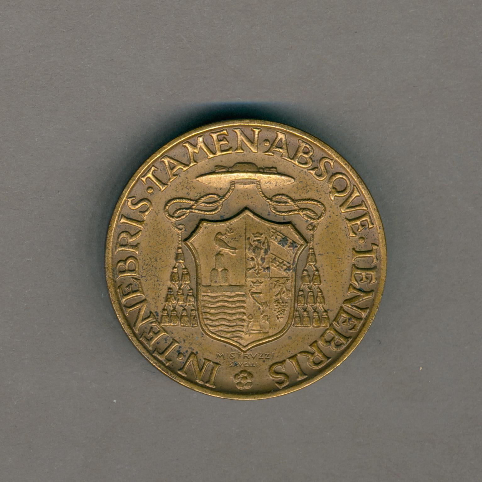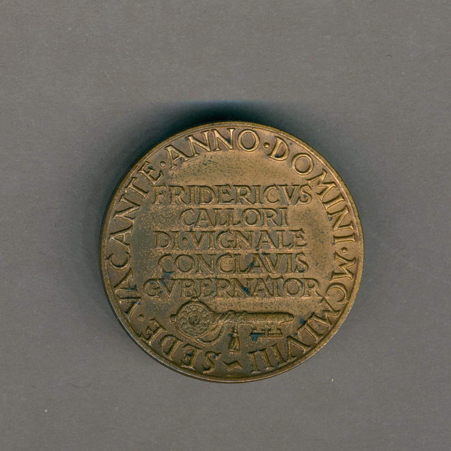Sede-vacante-penning 1958 met wapen van Federico Callori di Vignale, titulair aartsbisschop van Maiuca , kz. opschrift en sleutel