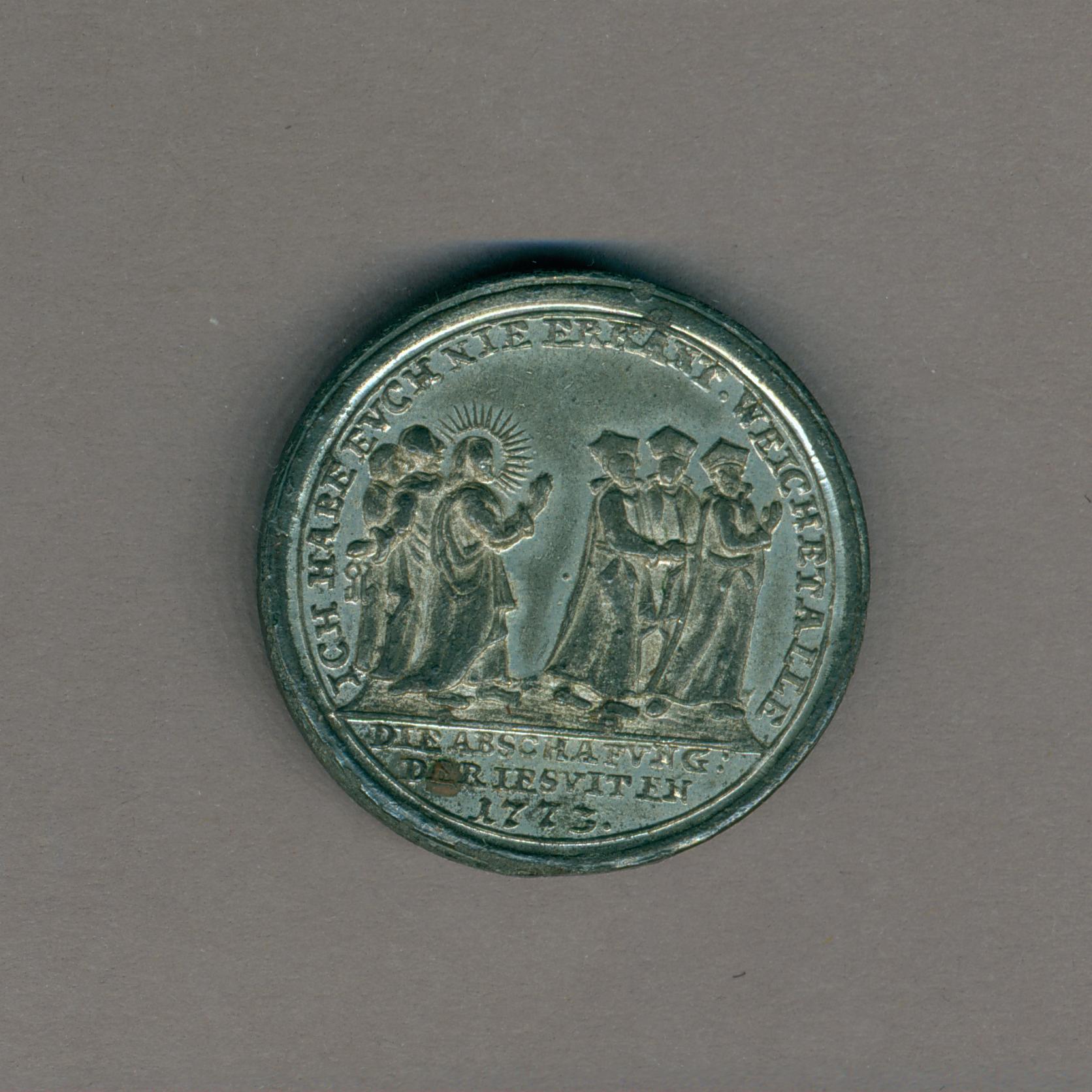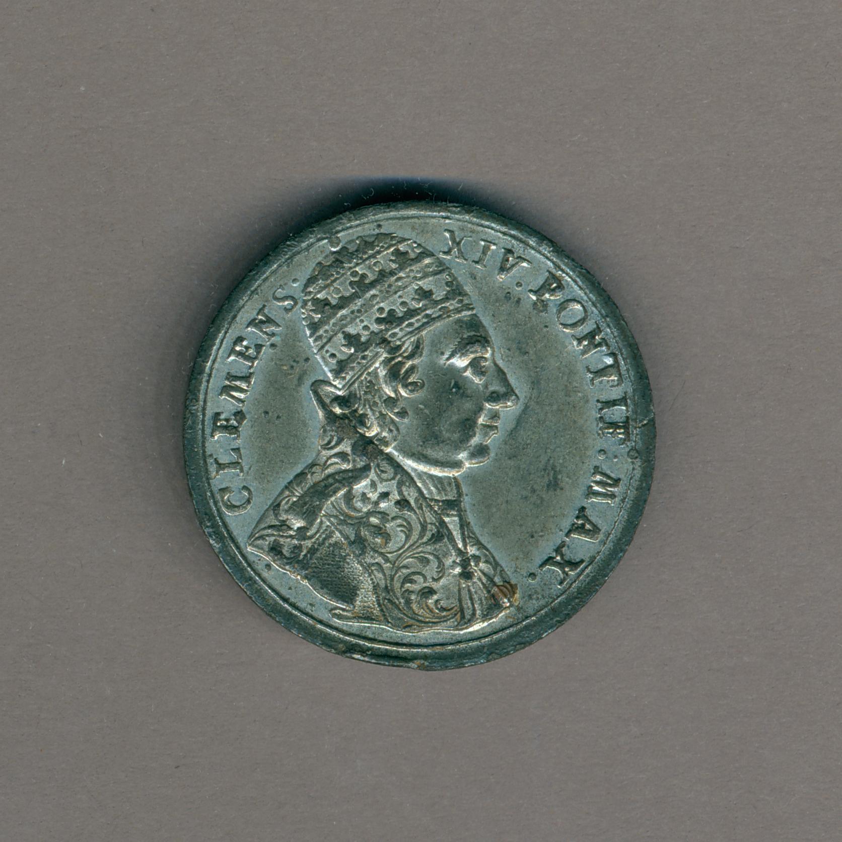 Pauspenning met portret paus Clemens XIV (1769-1774), kz. Christus, afschaffing jezuïeten