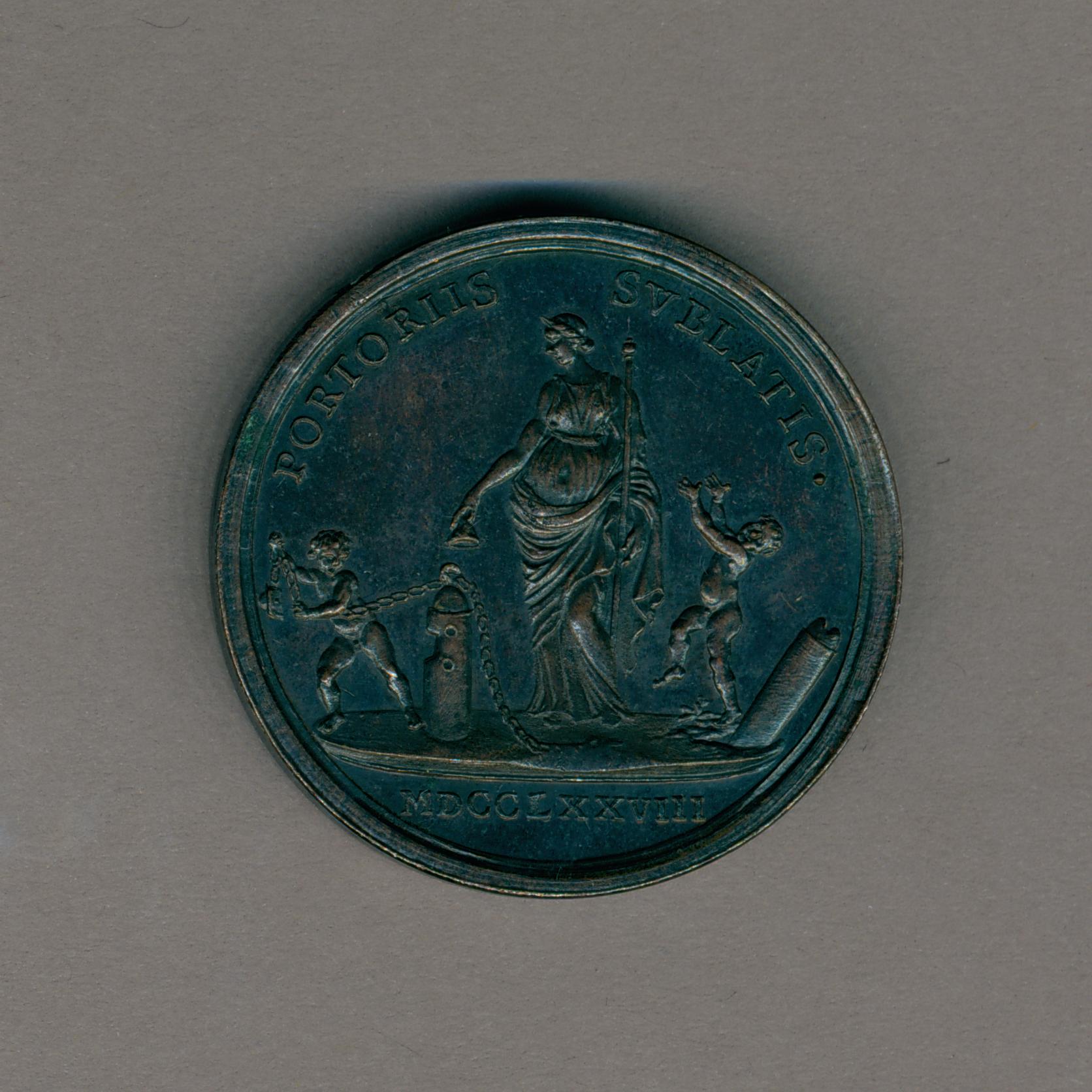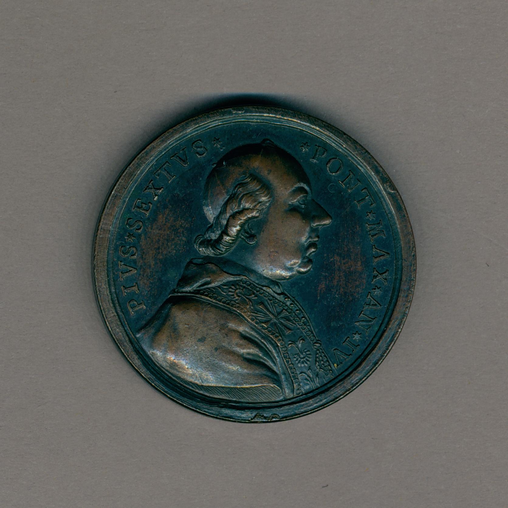 Pauspenning met portret paus Pius VI (1775-1799), met "... AN IV", kz. allegorische figuur vrijheid