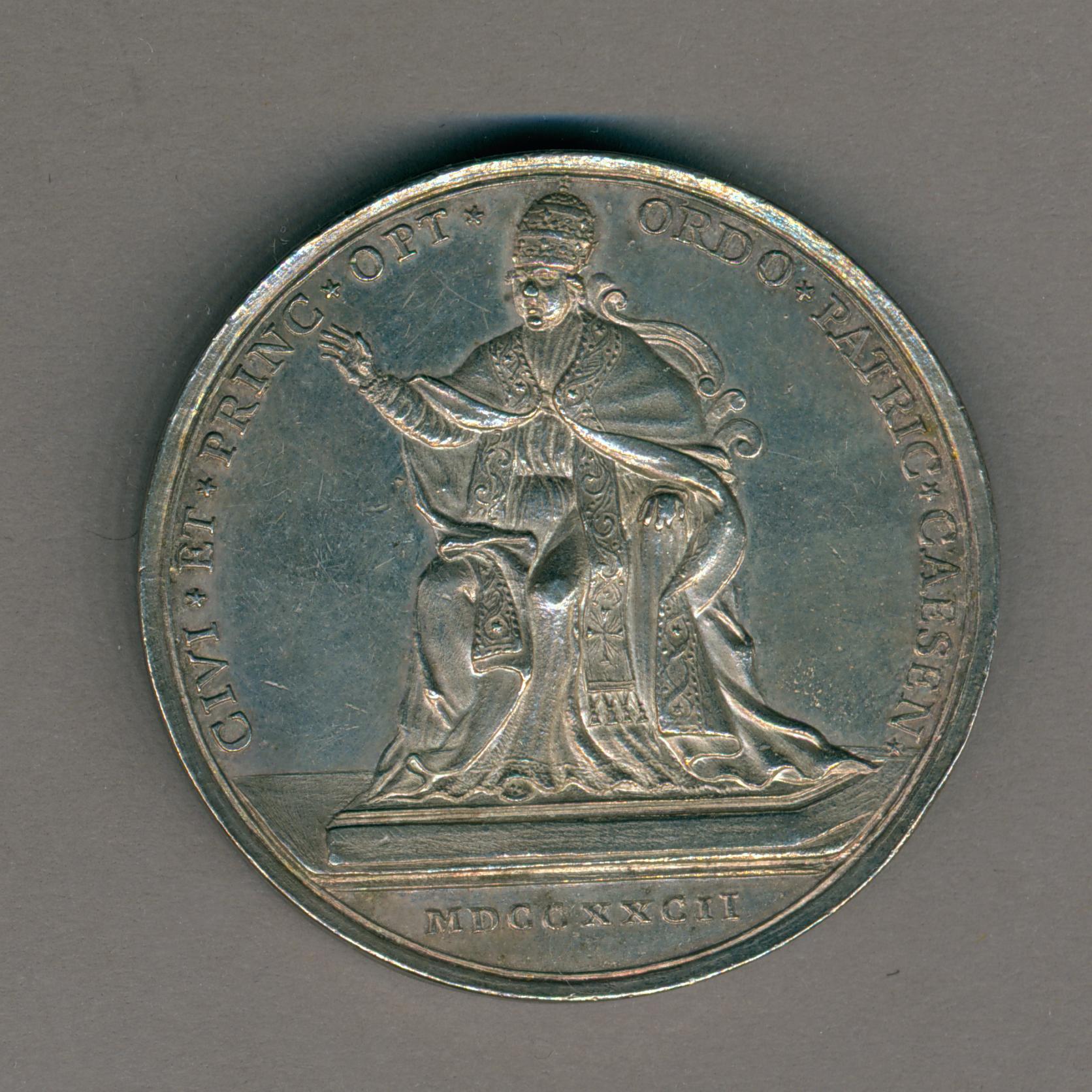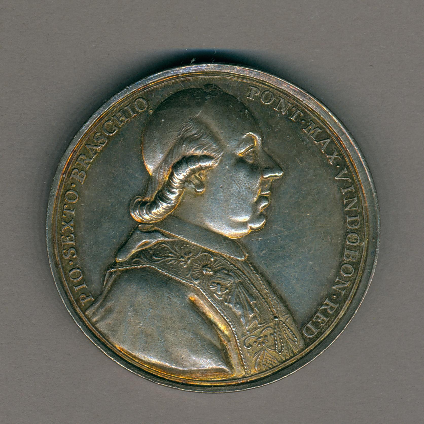 Pauspenning met portret paus Pius VI (1775-1799), kz. tronende paus
