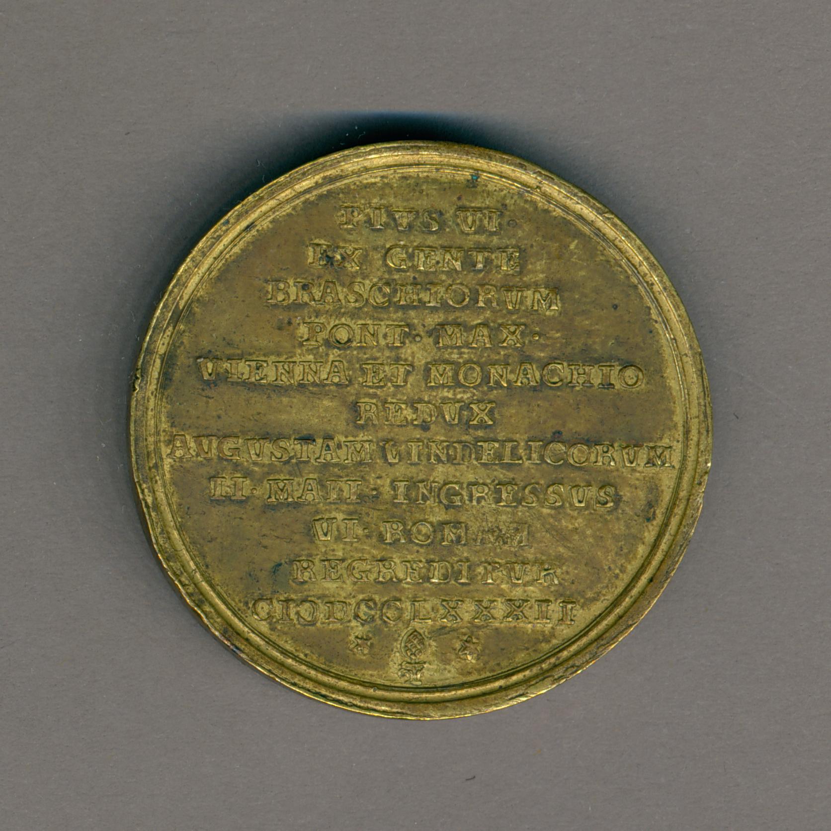 Pauspenning met portret paus Pius VI (1775-1799), kz. opschrift