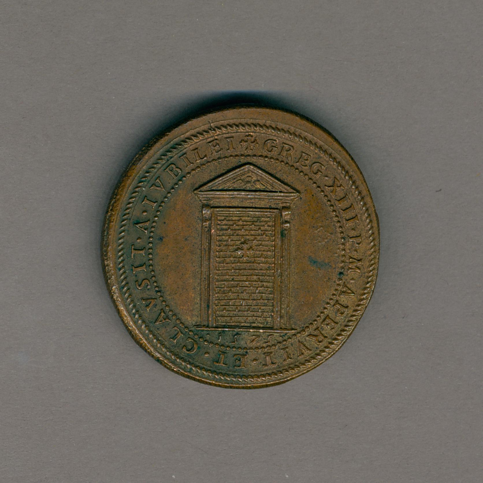 Pauspenning paus Gregorius XIII (1572-1585) met portret Christus, kz. H. deur