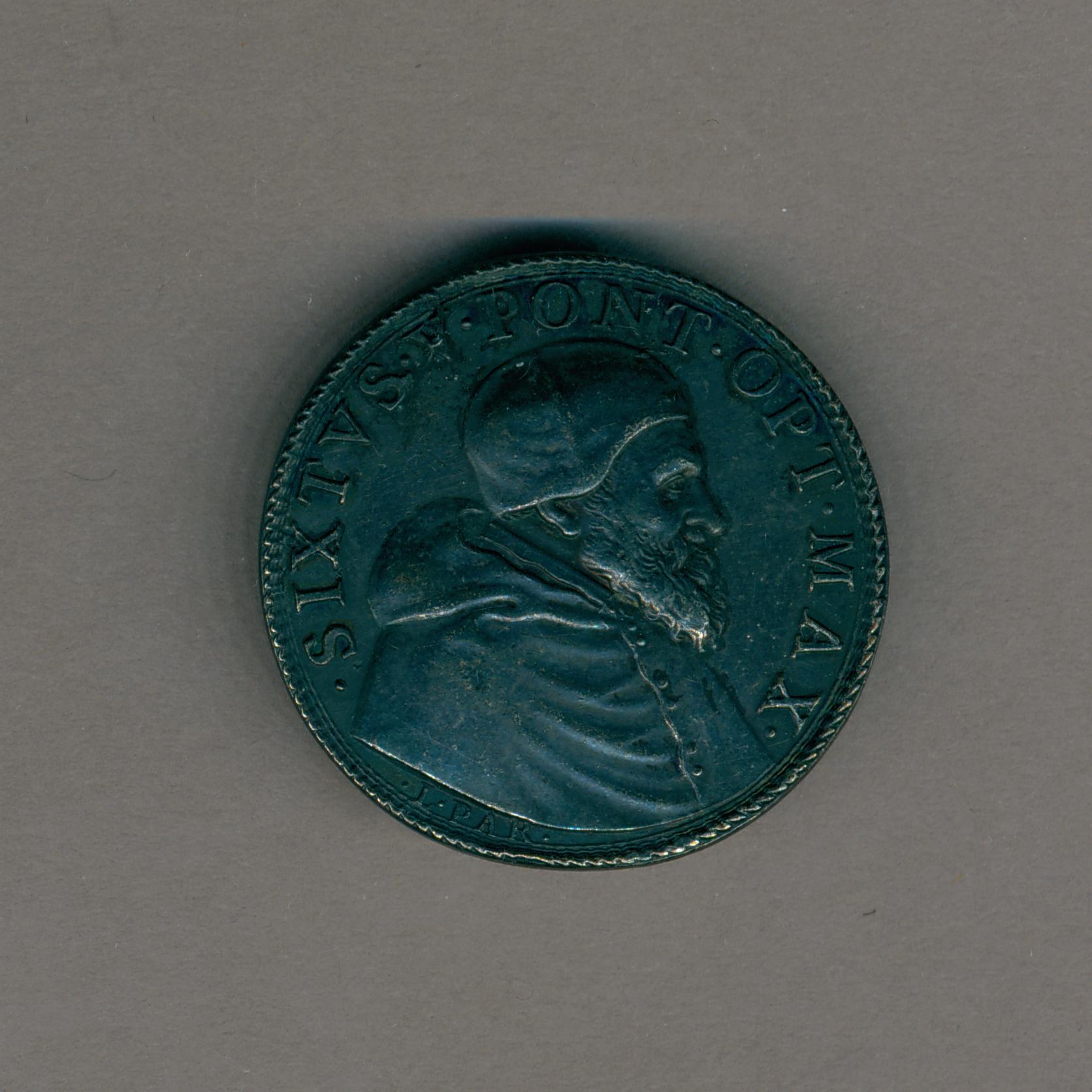 Pauspenning met portret paus Sixtus V (1585-1590), kz. portret Christus met aureool, met "Beati qui custodiunt vias meas"