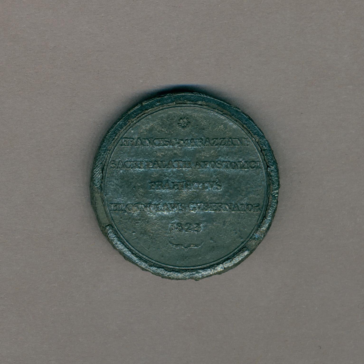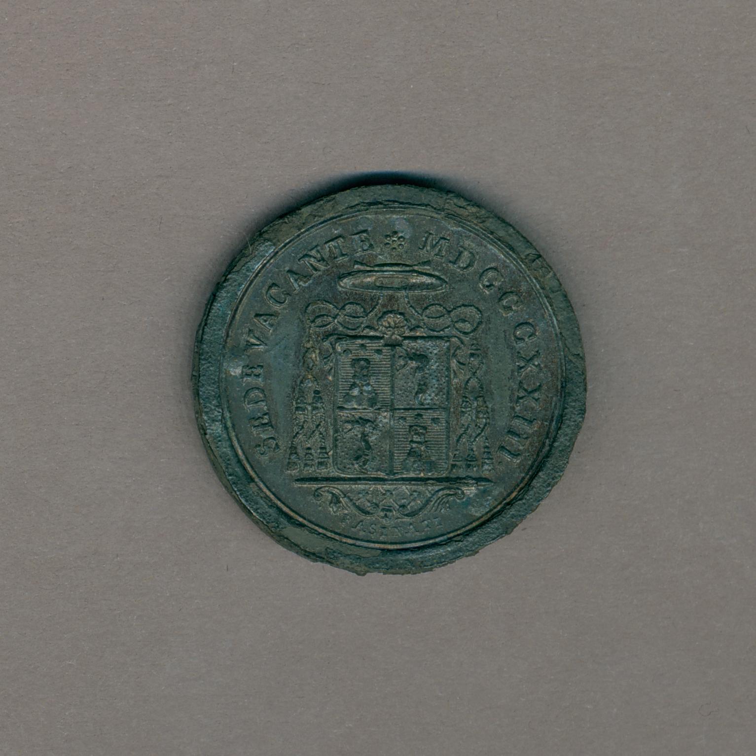 Sede-vacante-penning met wapenschild, kz. met "Francisc Marazzani sacri palatii apostolicii praefectus et conclavus gubernator"