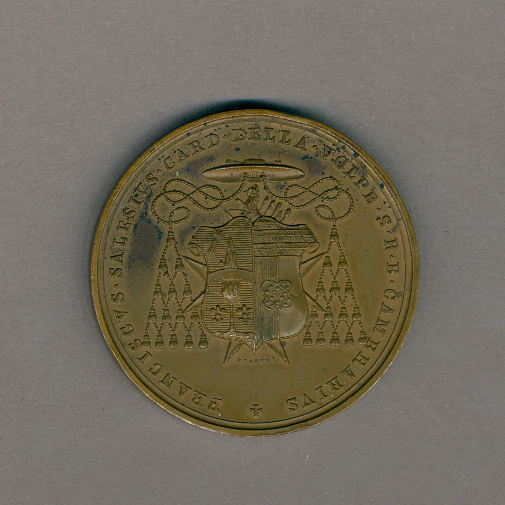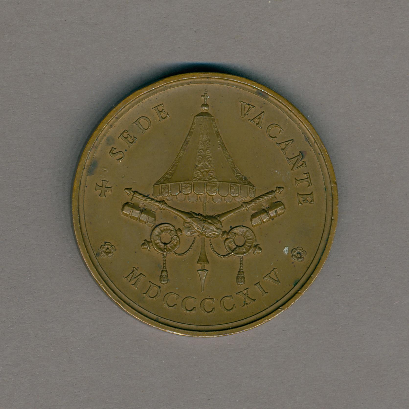 Sede-vacante-penning met wapenschild van Francesco Salesio della Volpe, met "Franciscus Salesius gard della volpe s.r.b. camerarius", kz. baldakijn, gekruiste sleutels