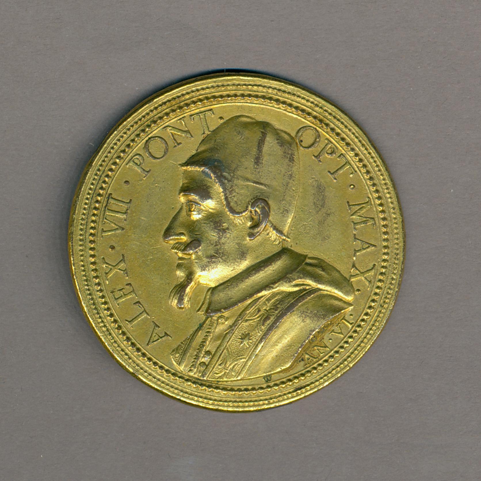 Pauspenning met portret paus Alexander VII (1655-1667), met "... AN VI", kz. haven Civita Vecchia