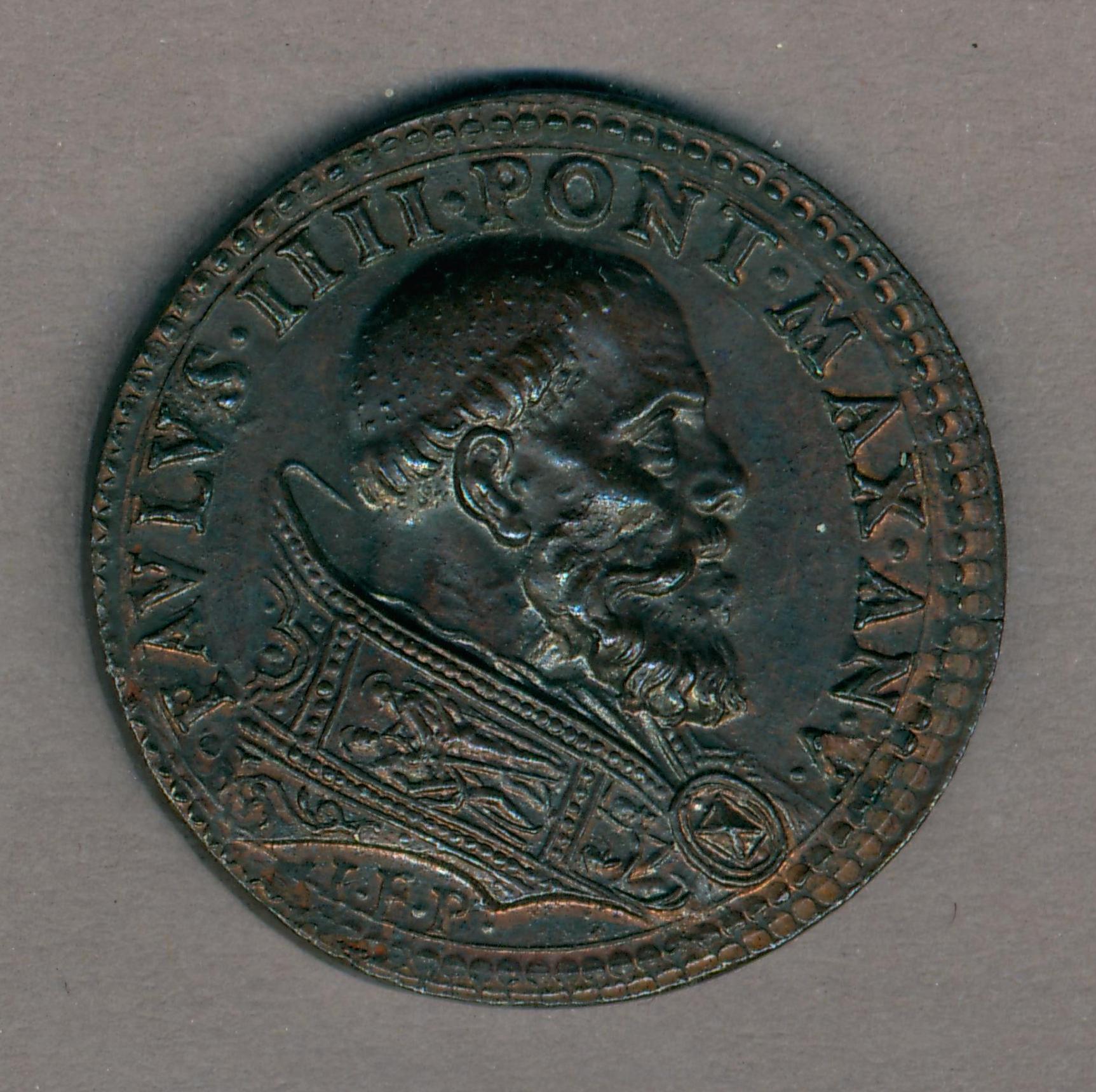 Pauspenning met portret paus Paulus IV (1555-1559), met "... AN V", kz. Christus met aureool