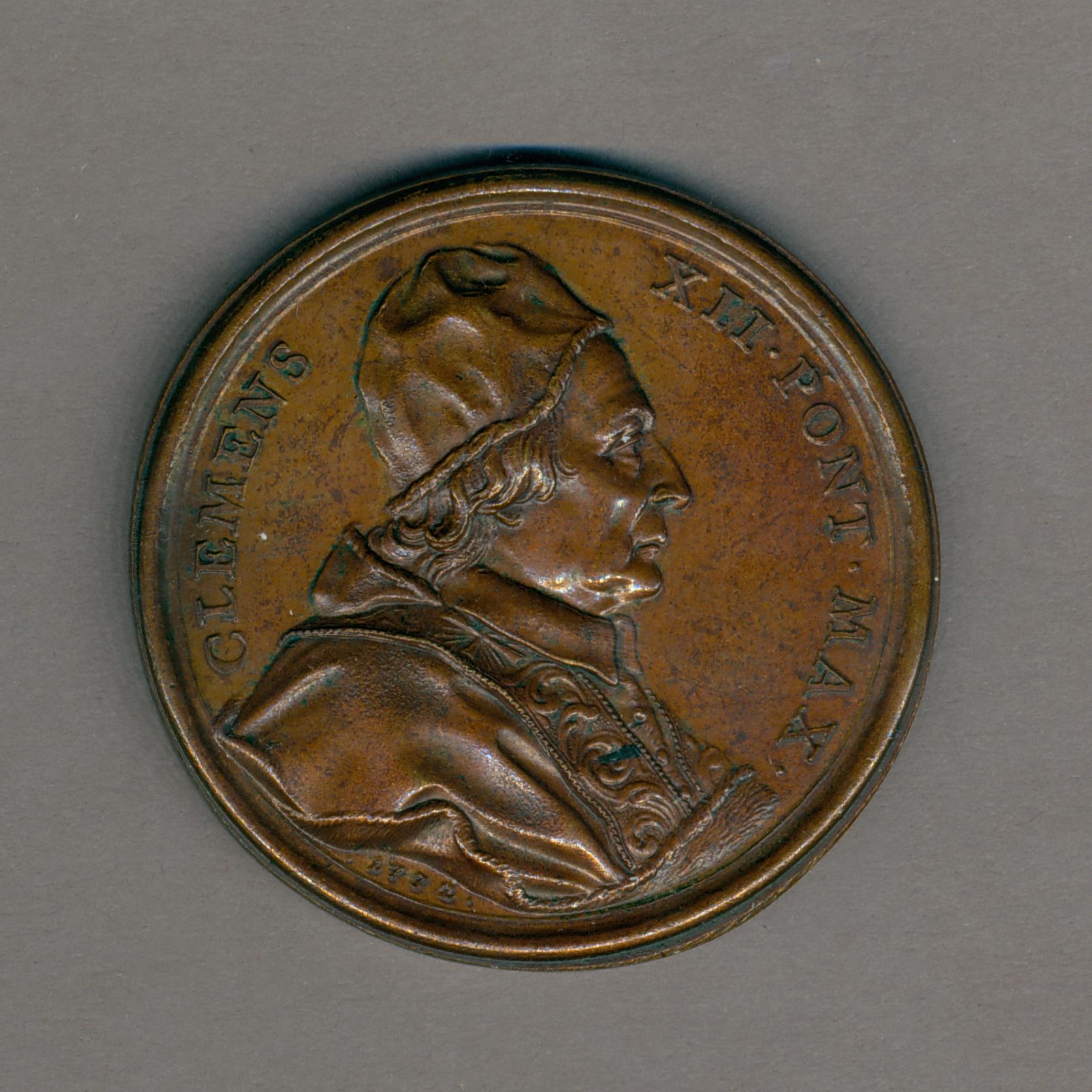 Pauspenning met portret paus Clemens XII (1730-1740), kz. opschrift