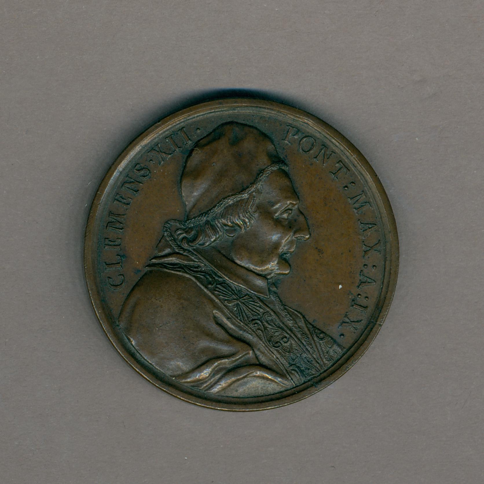 Pauspenning met portret paus Clemens XII (1730-1740), met "... A IX", kz. Christus temidden van armen