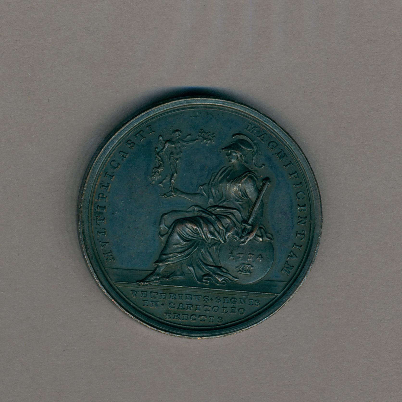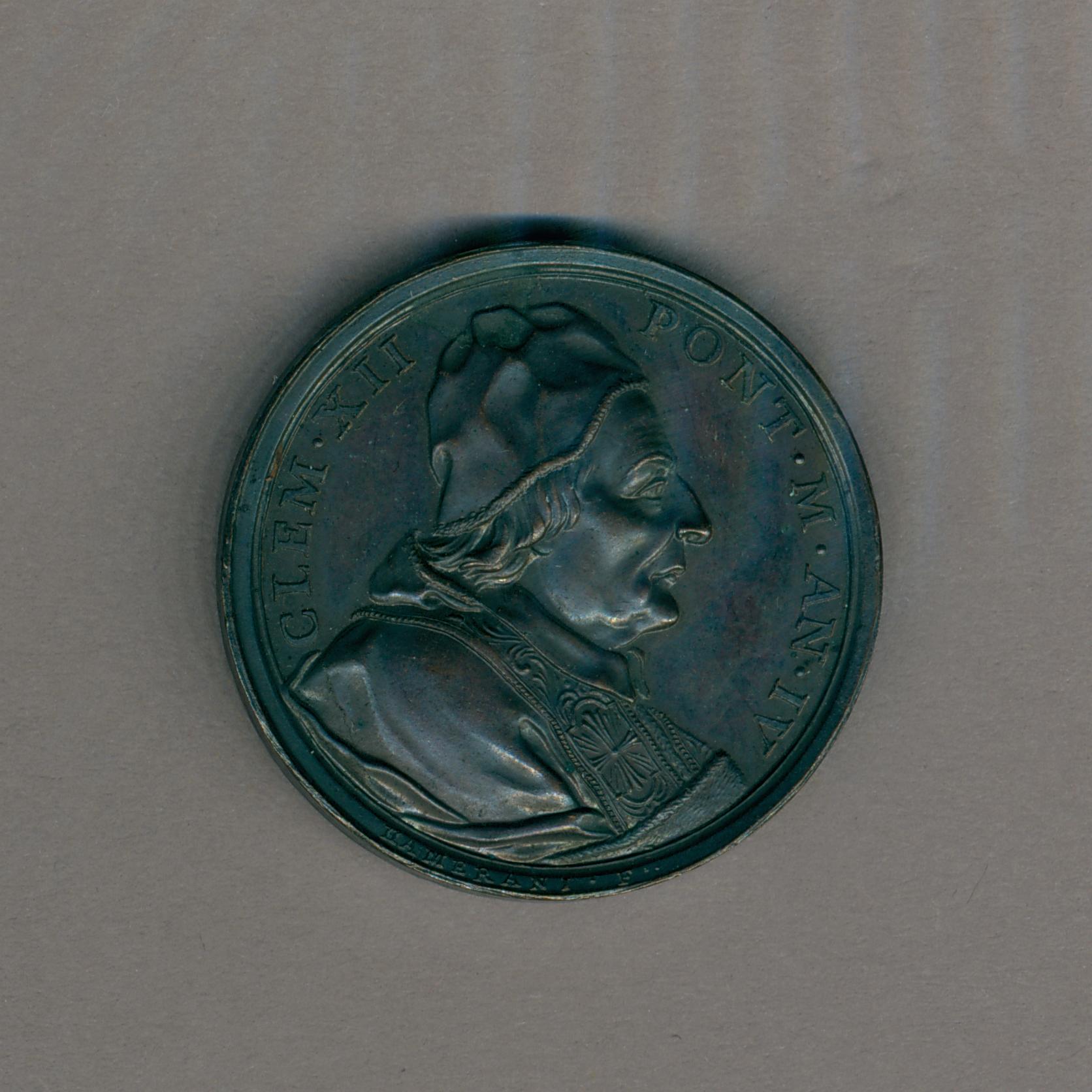Pauspenning met portret paus Clemens XII (1730-1740), met "... AN IV", kz. allegorische figuur Rome