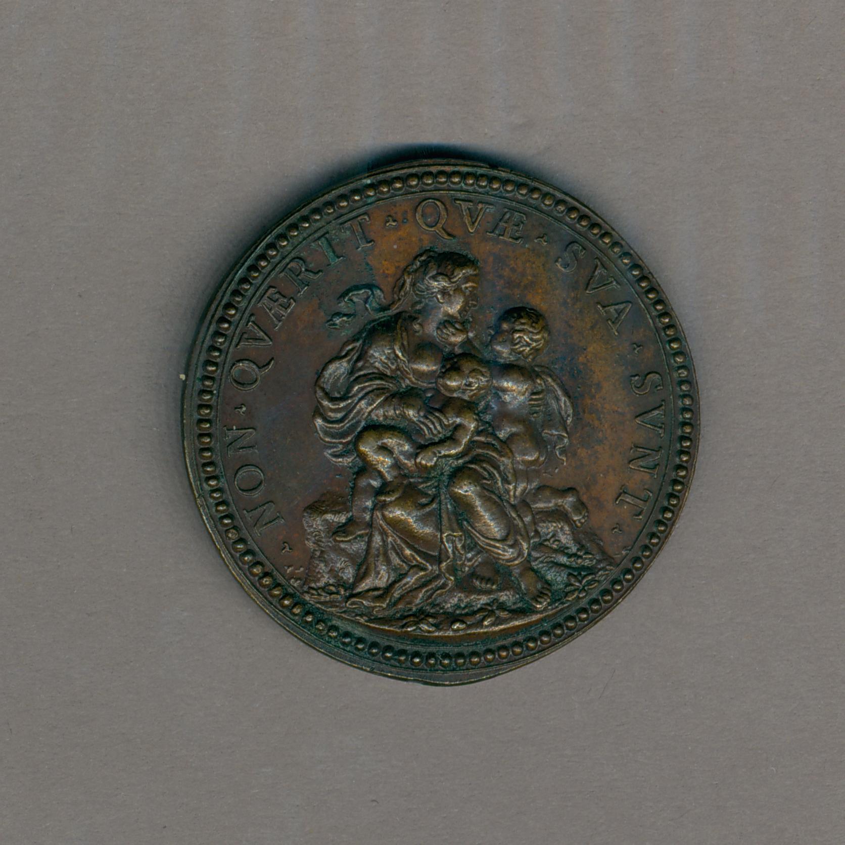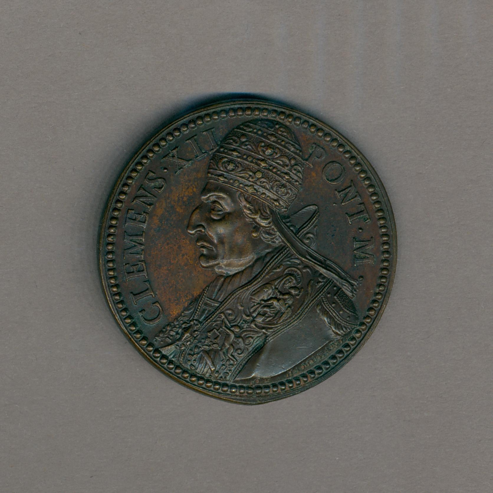 Pauspenning met portret paus Clemens XII (1730-1740), kz. allegorische figuur liefdadigheid, met "Non quaerit quae sua sunt"