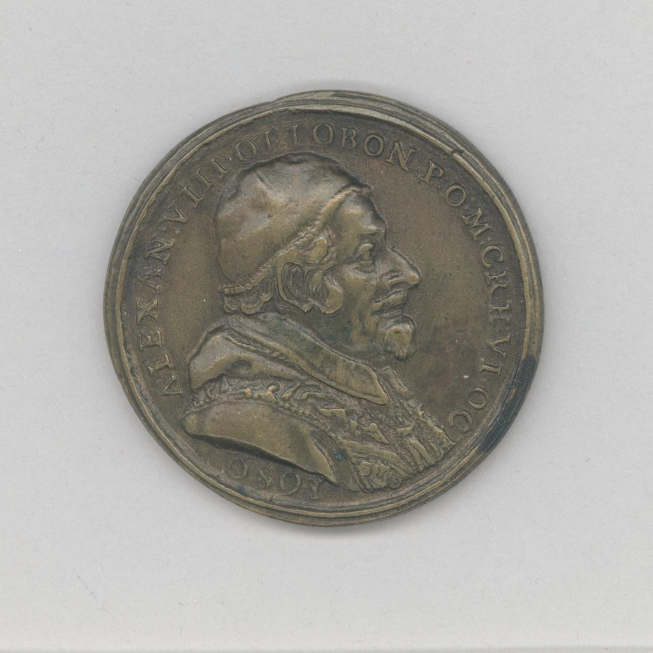 Pauspenning met portret paus Alexander VIII (1689-1691), kz. vrouw, gezeten, met vier kinderen, Caritas(?)