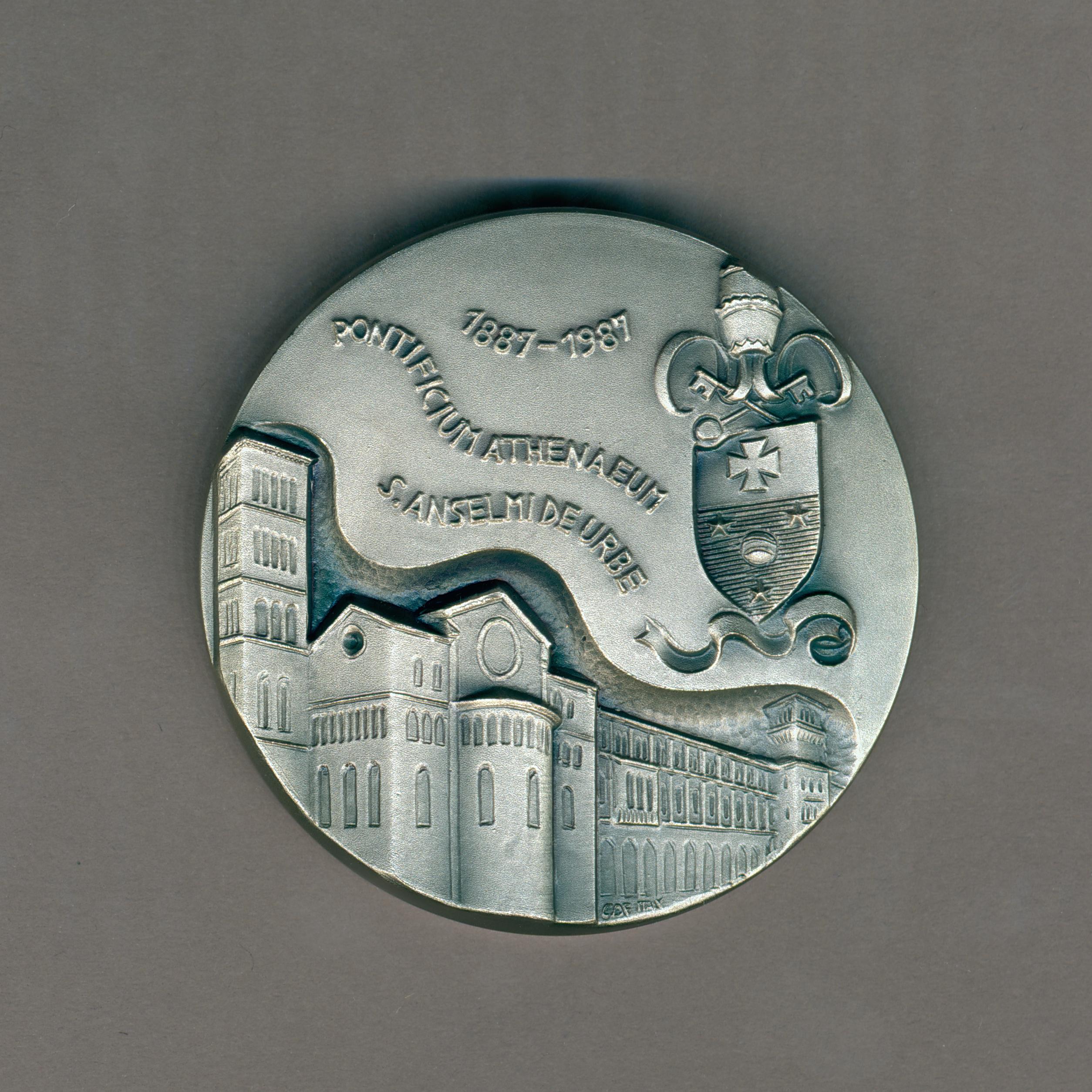 Gedenkpenning met Pauselijk Atheneum van St. Anselmus te Rome, pauselijk wapen, kz. krans