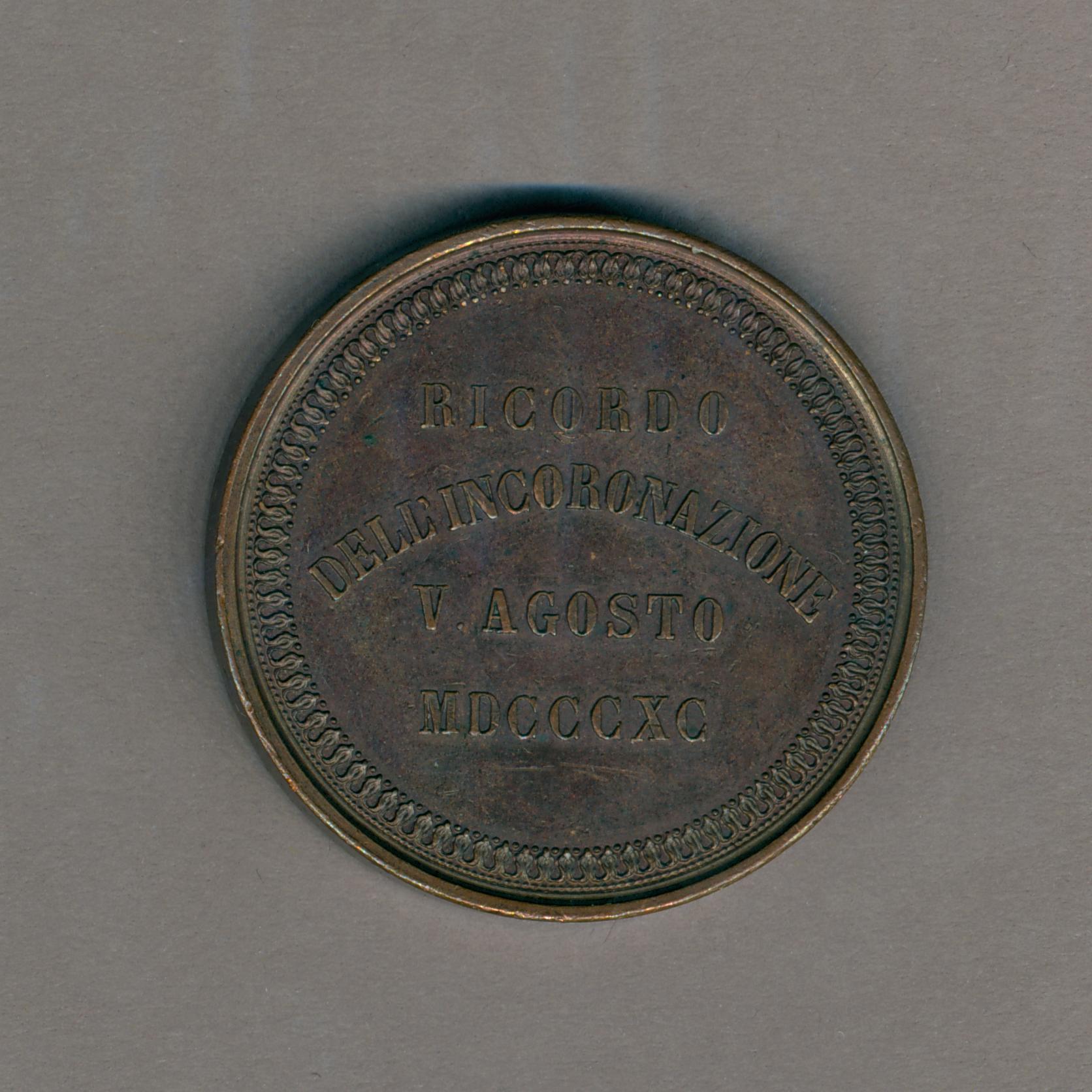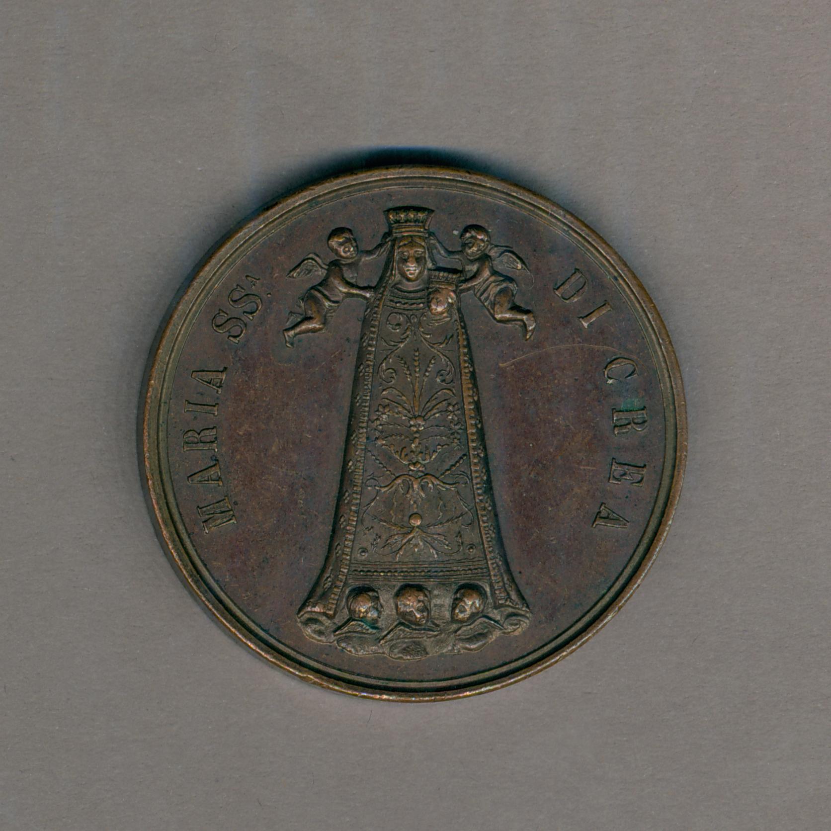 Gedenkpenning met Maria met kind met "Maria SSa di Crea", engelen, kz.met "Ricordo dell incoronazione v. agosto MDCCCXC"