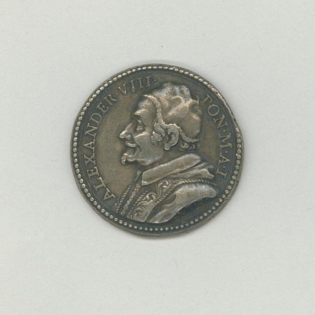 Pauspenning met portret paus Alexander VIII (1689-1691), met "... A I", kz. H. Geest