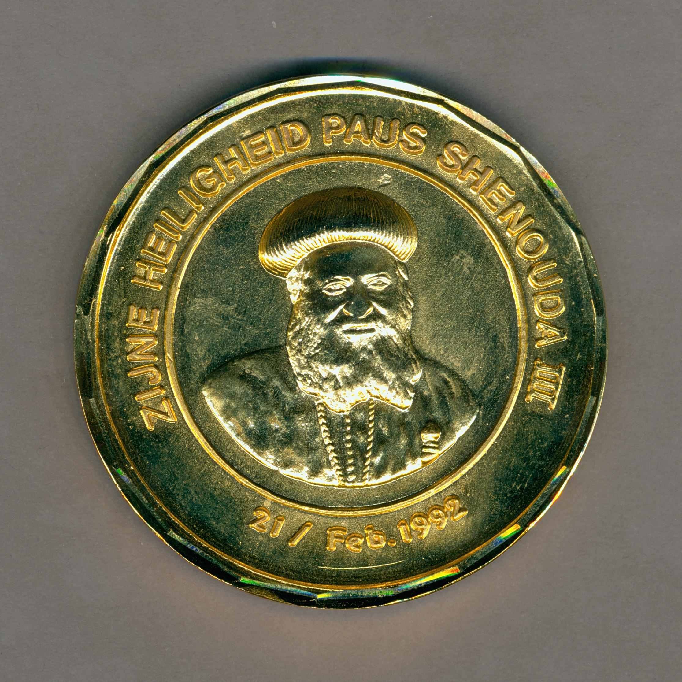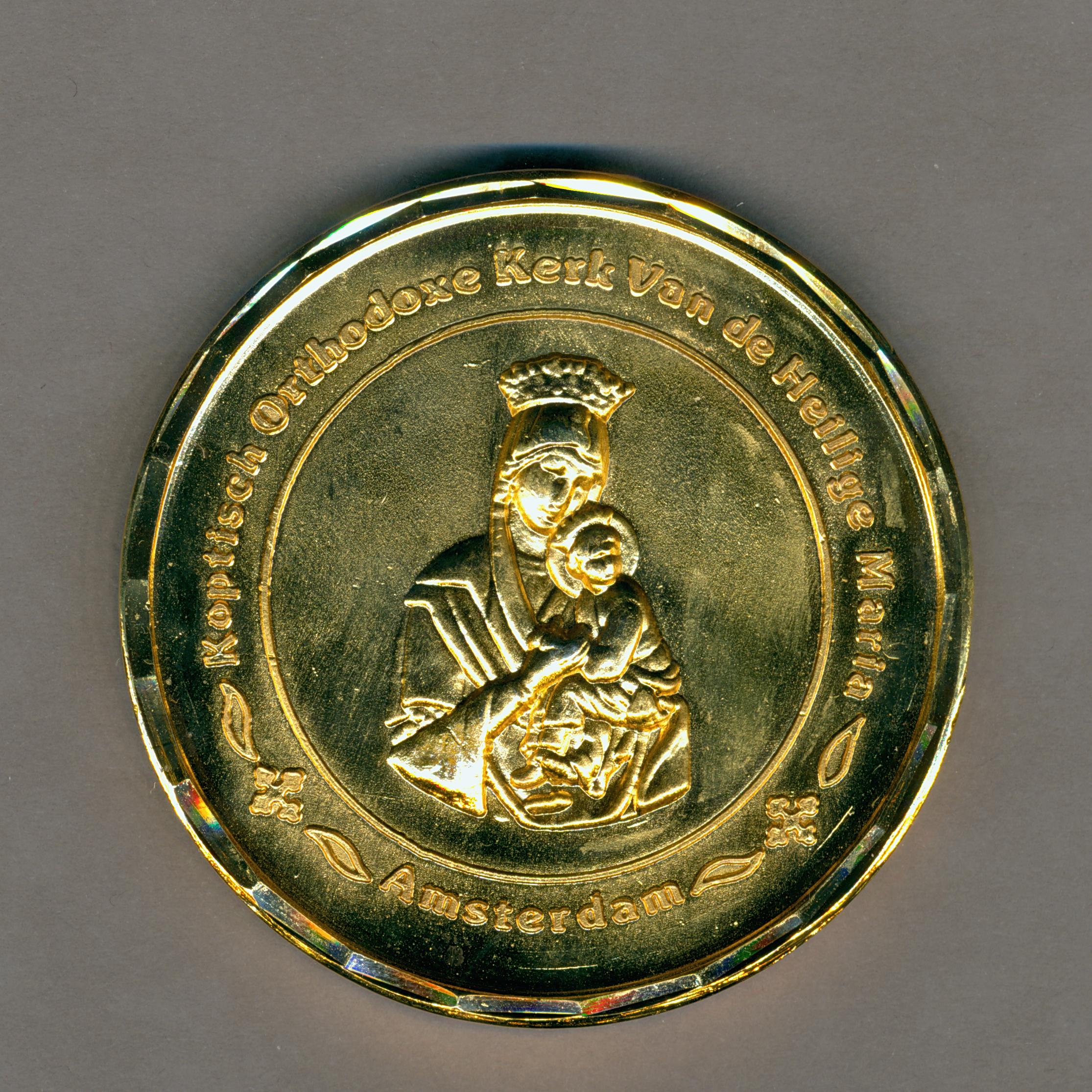 Pauspenning met portret paus Shenouda III (1971-2012), paus van Koptisch-orthodoxe Kerk van Alexandrië, kz. Maria met kind, met "... kerk van de Heilige Maria Amsterdam"