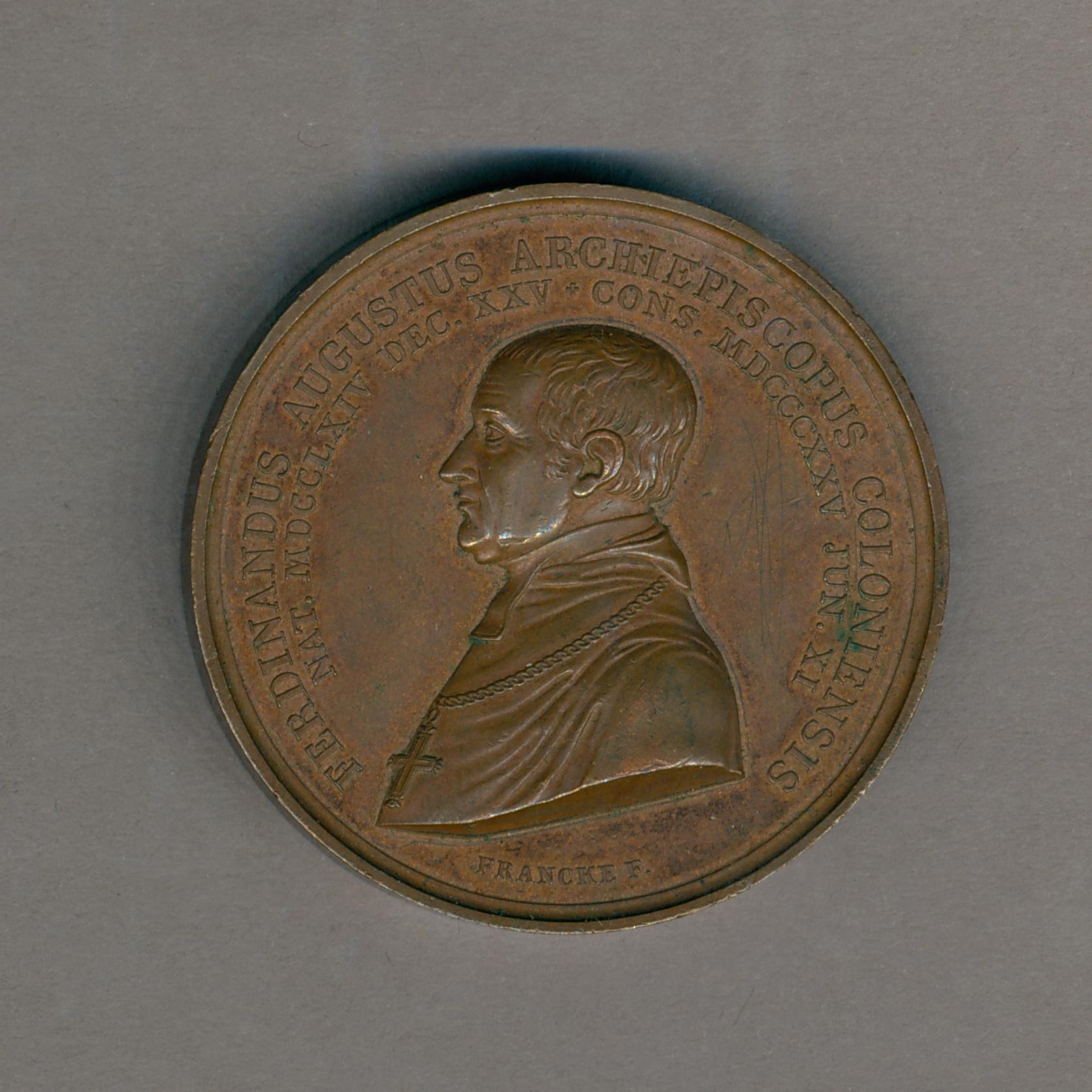 Gedenkpenning met portret aartsbisschop Ferdinand Augustus, kz. opschrift
