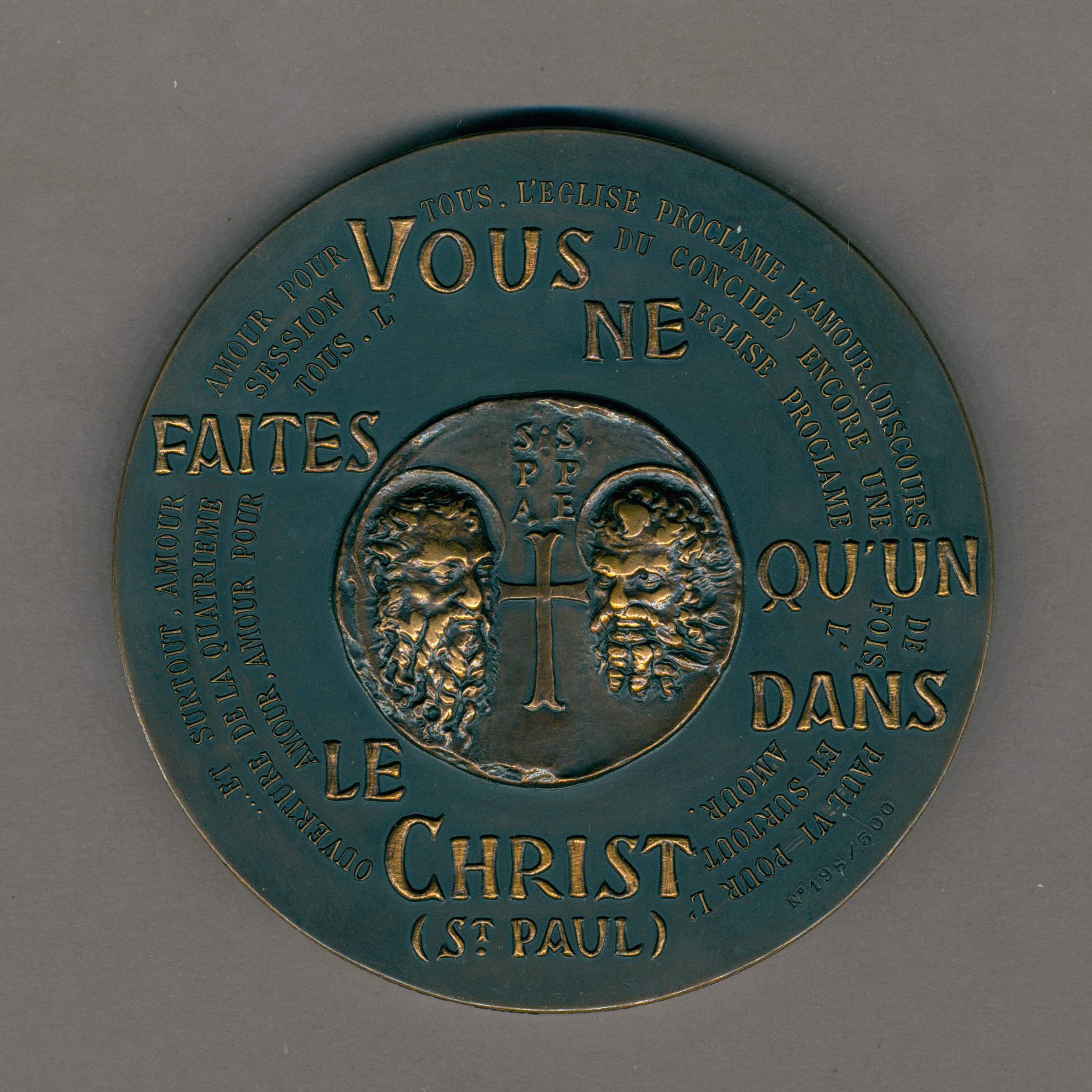 Gedenkpenning met "...Vous ne faites qu'un dans le Christ...", kz, "...Sur cette pierre Je construirai mon Eglise..."