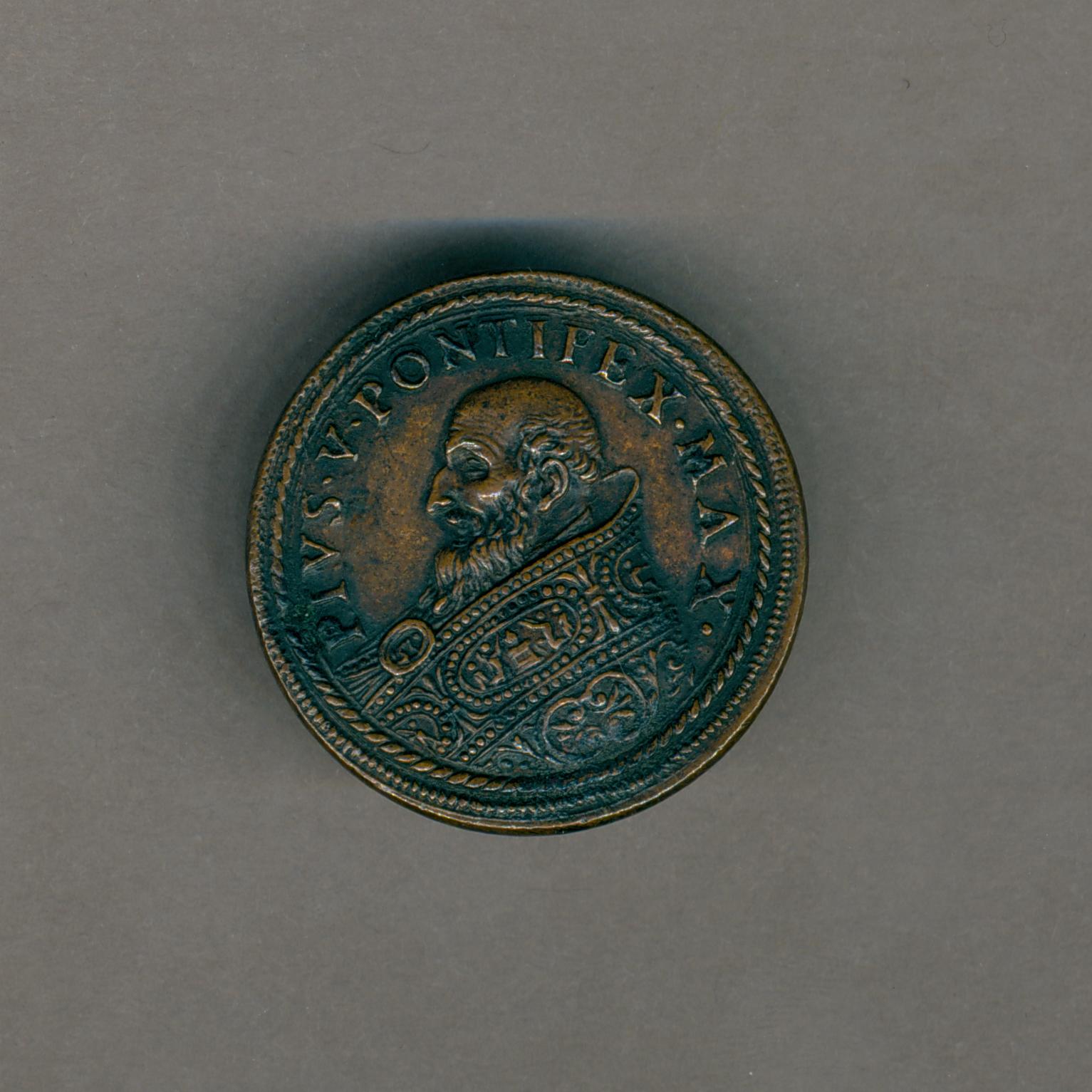 Pauspenning met portret paus Pius V (1564-1572), kz. visvangst
