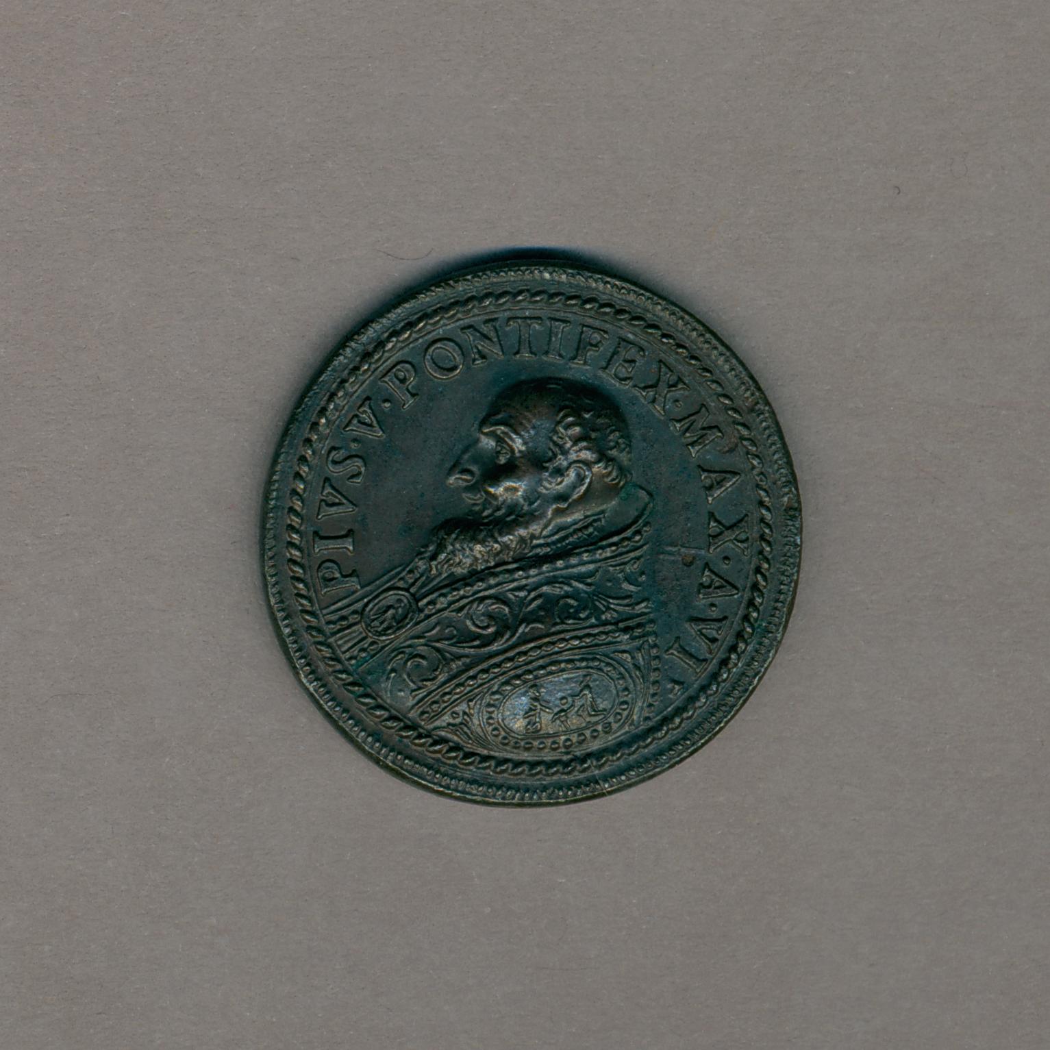 Pauspenning met portret paus Pius V (1564-1572), kz. visvangst