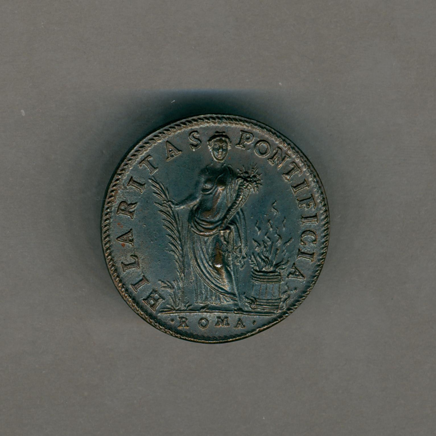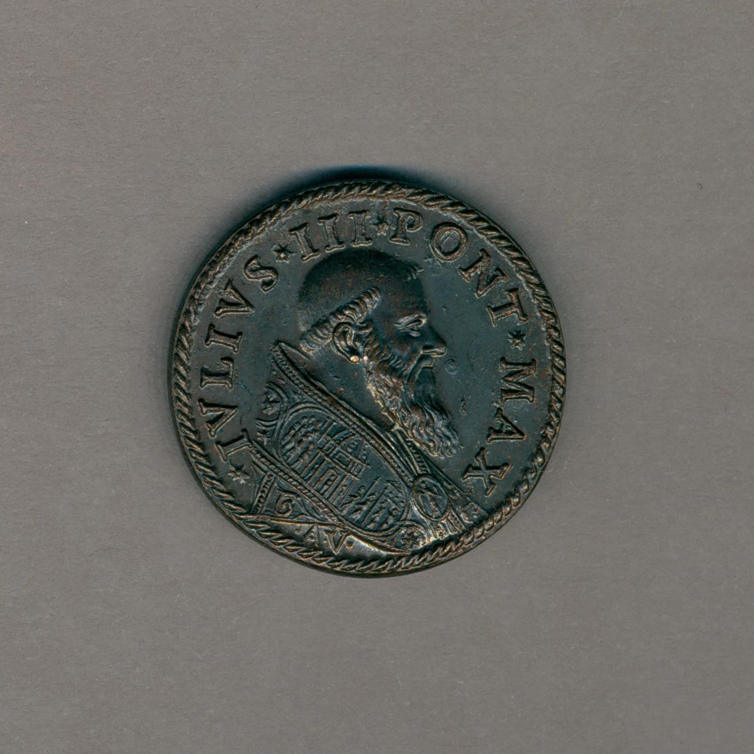 Pauspenning met portret paus Julius III (1550-1555), kz. personificatie vrolijkheid