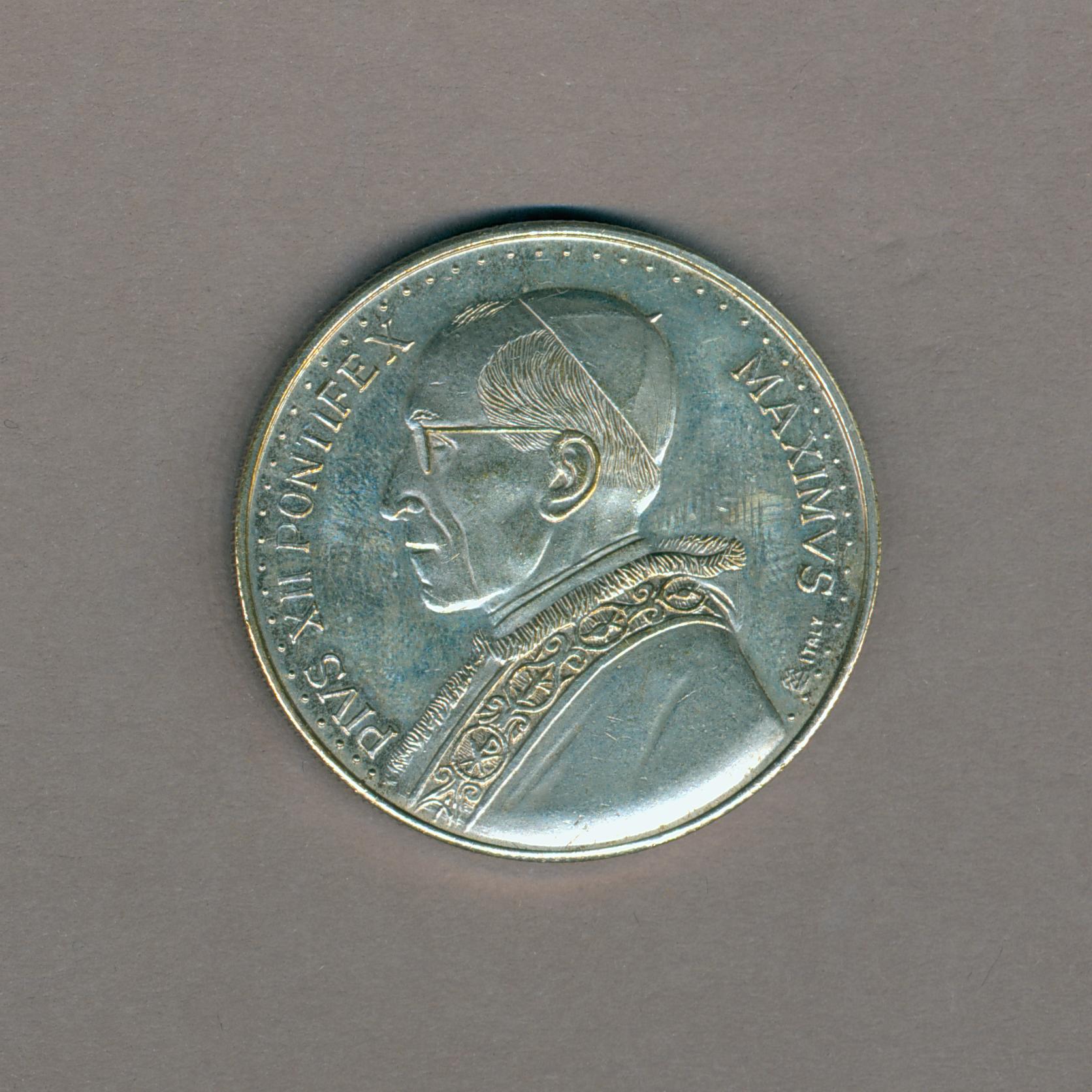 Pauspenning met portret paus Pius XII (1939-1958), kz. pauselijk wapen