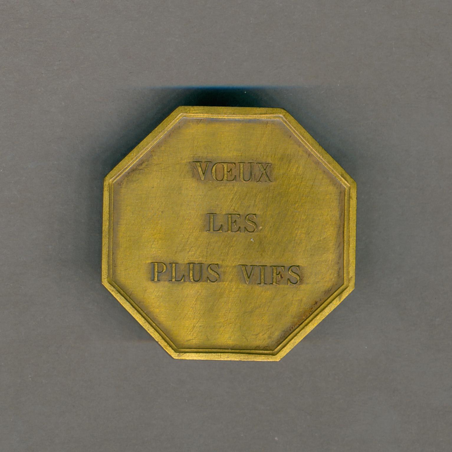 Gedenkpenning met geboorte van Christus met "In terra pax", kz. "voeux les plus vifs"