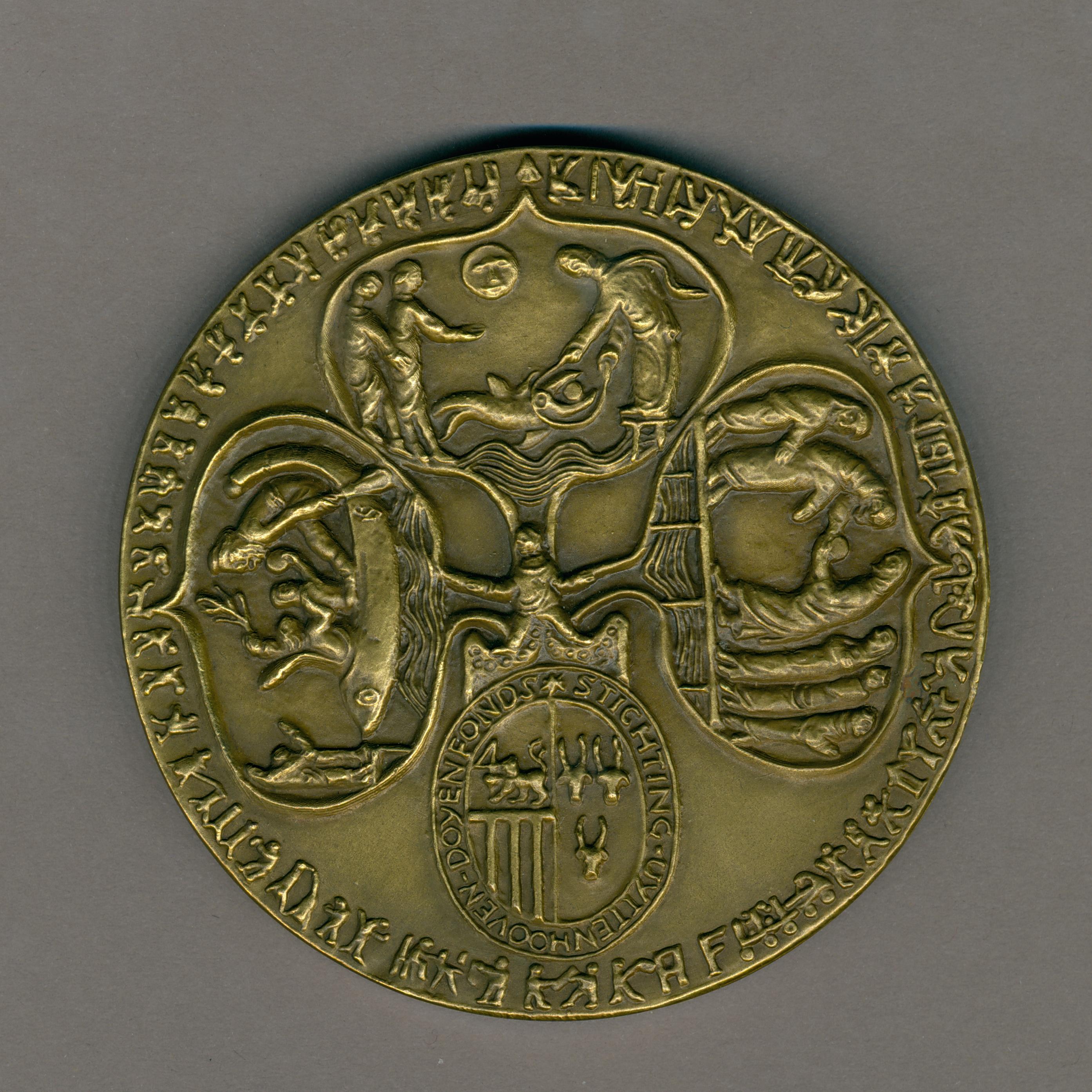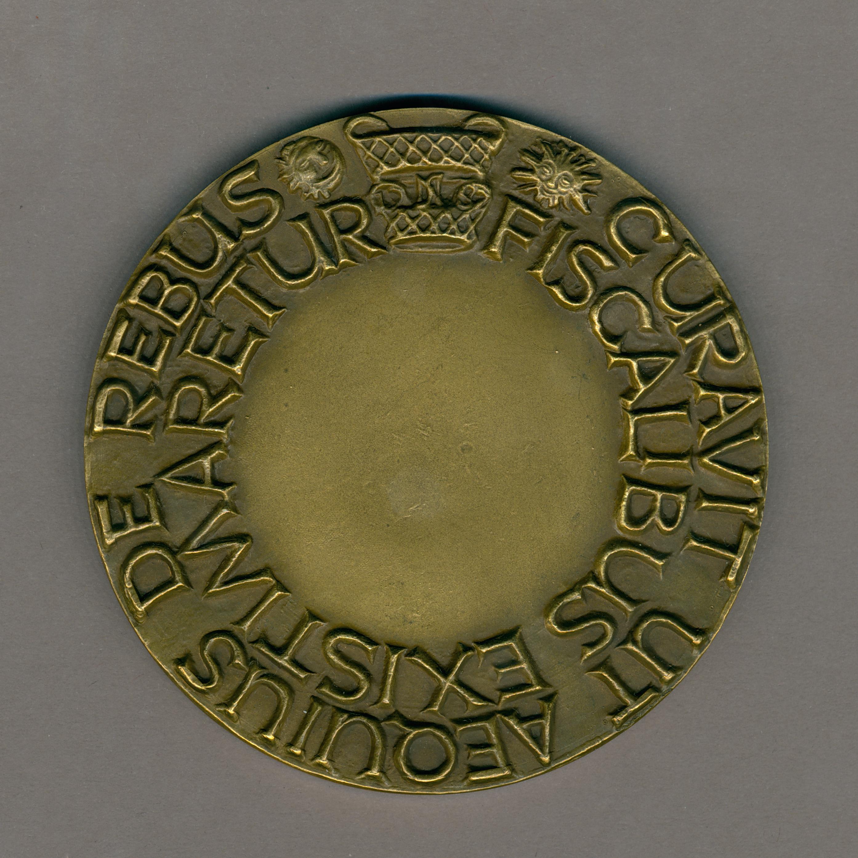 Erepenning van Stichting Uyttenhooven-Doyen Fonds met drie belastingthema's en zegel van het fonds, kz. opschrift