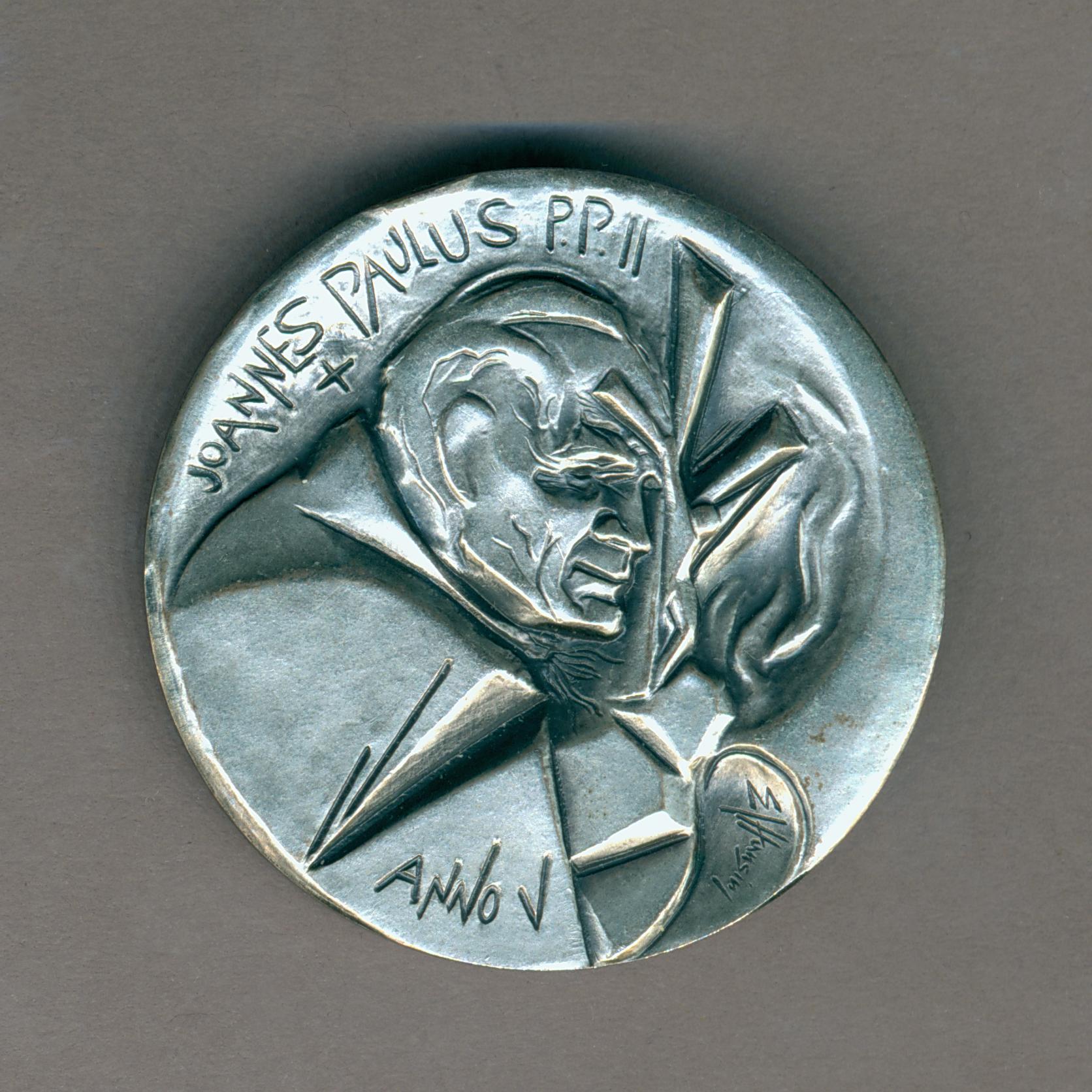 Pauspenning met paus Johannes Paulus II (1978-2005), met "... ANNO V", kz. Onze-Lieve-Vrouw van Fatima