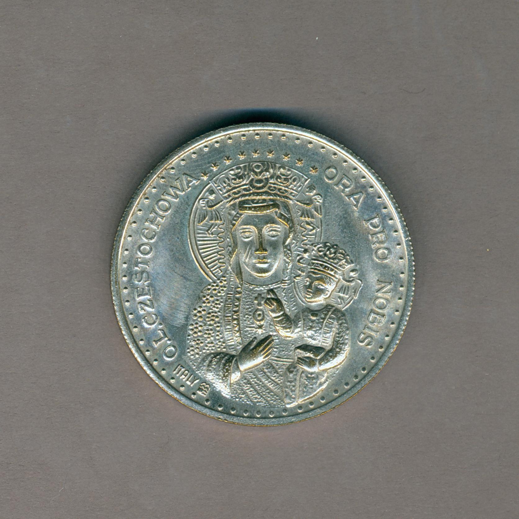 Pauspenning met portret paus Johannes Paulus II (1978-2005), kz. Maria van Częstochowa met kind