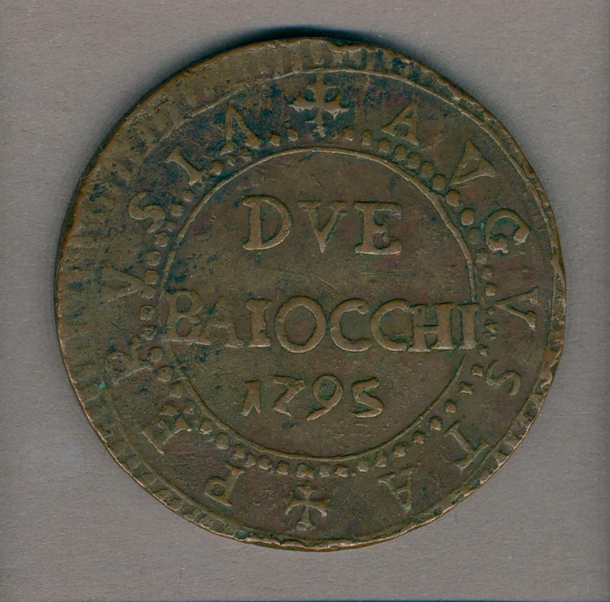 Twee baiocchi met pauselijk wapen Pius VI (1775-1799), kz. lauwerkrans met munteenheid