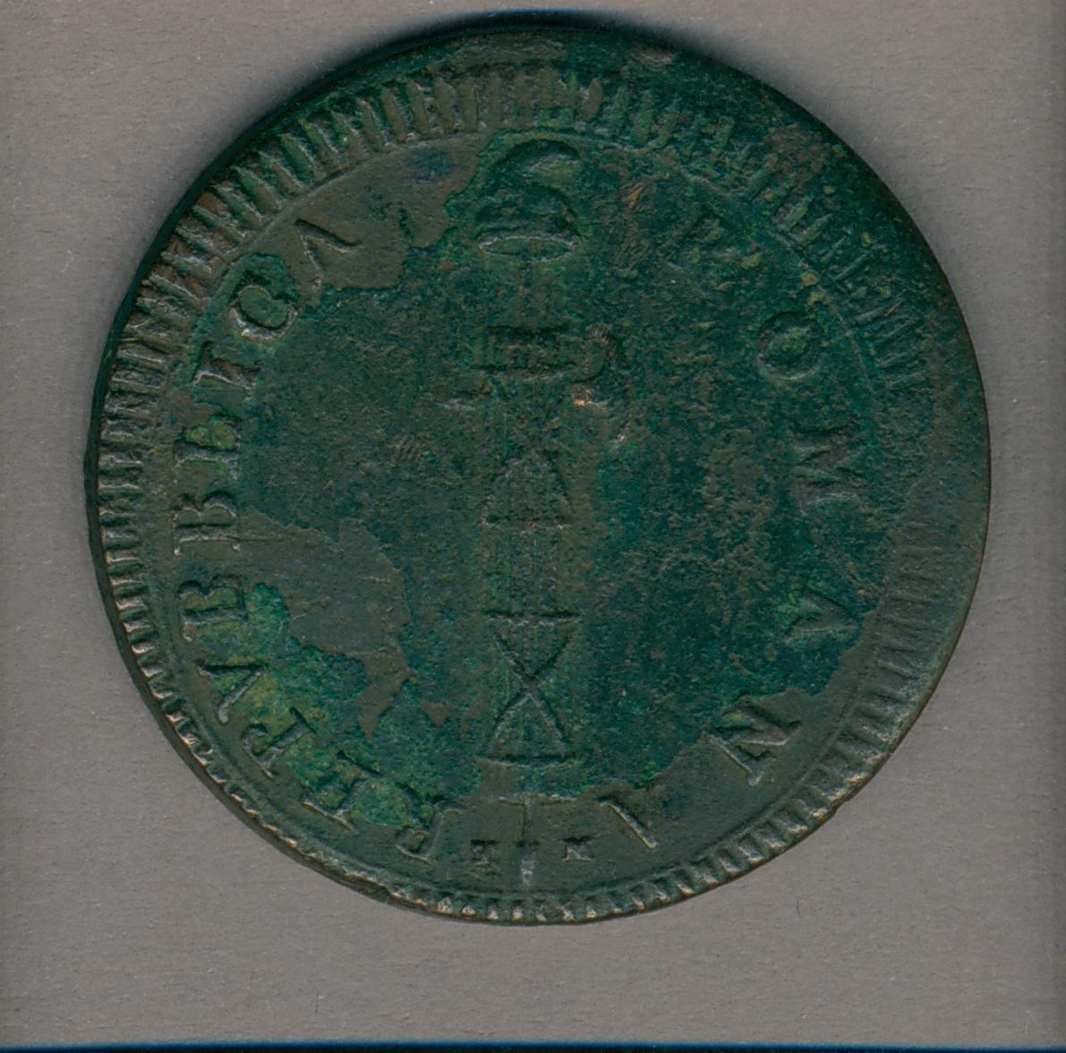Twee baiocchi eerste Romeinse Republiek met fasces, kz. lauwerkrans met munteenheid