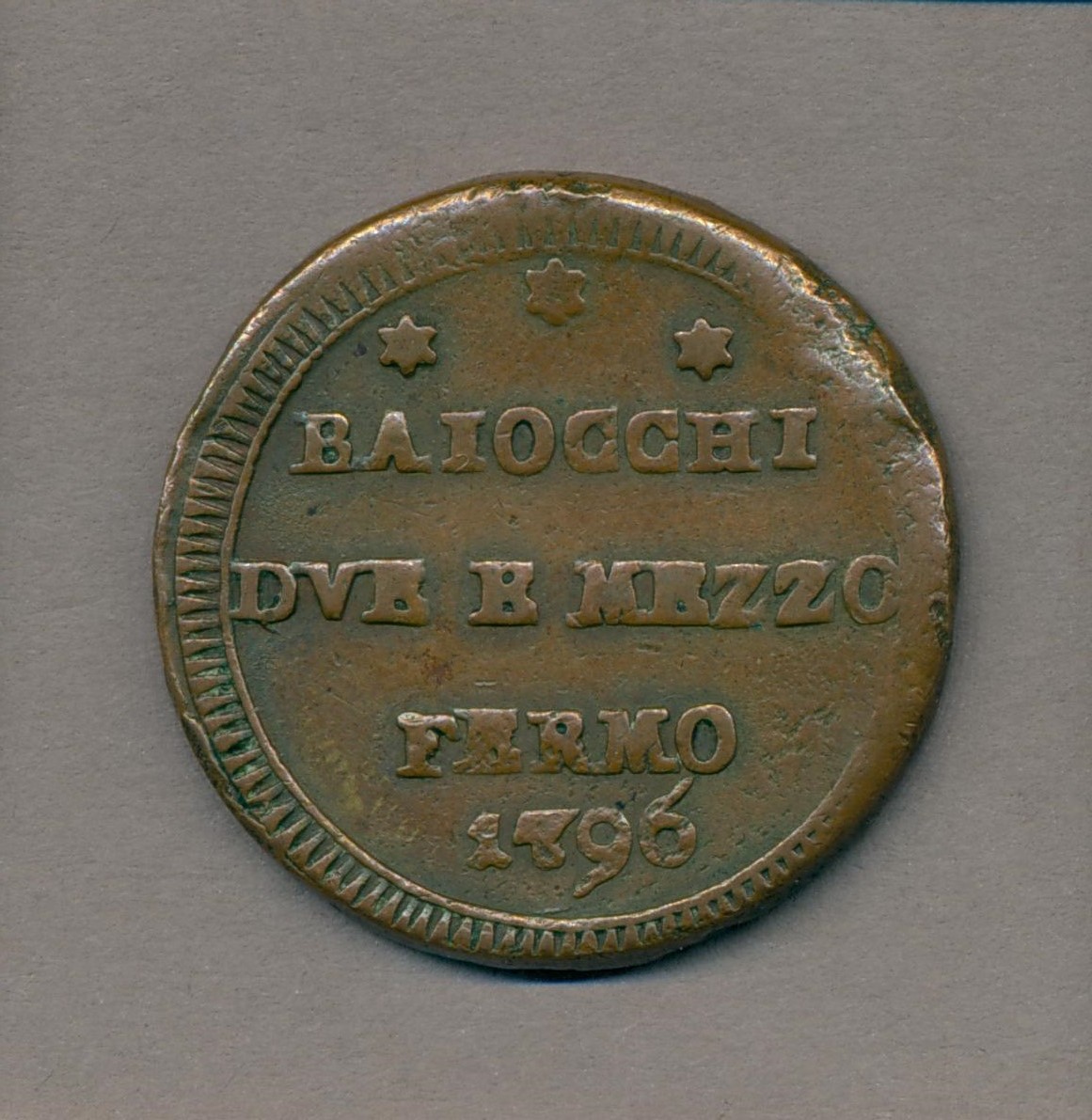 Tweeëneenhalve baiocchi Leo XIII (1878-1903) met afbeelding Petrus, kz. munteenheid