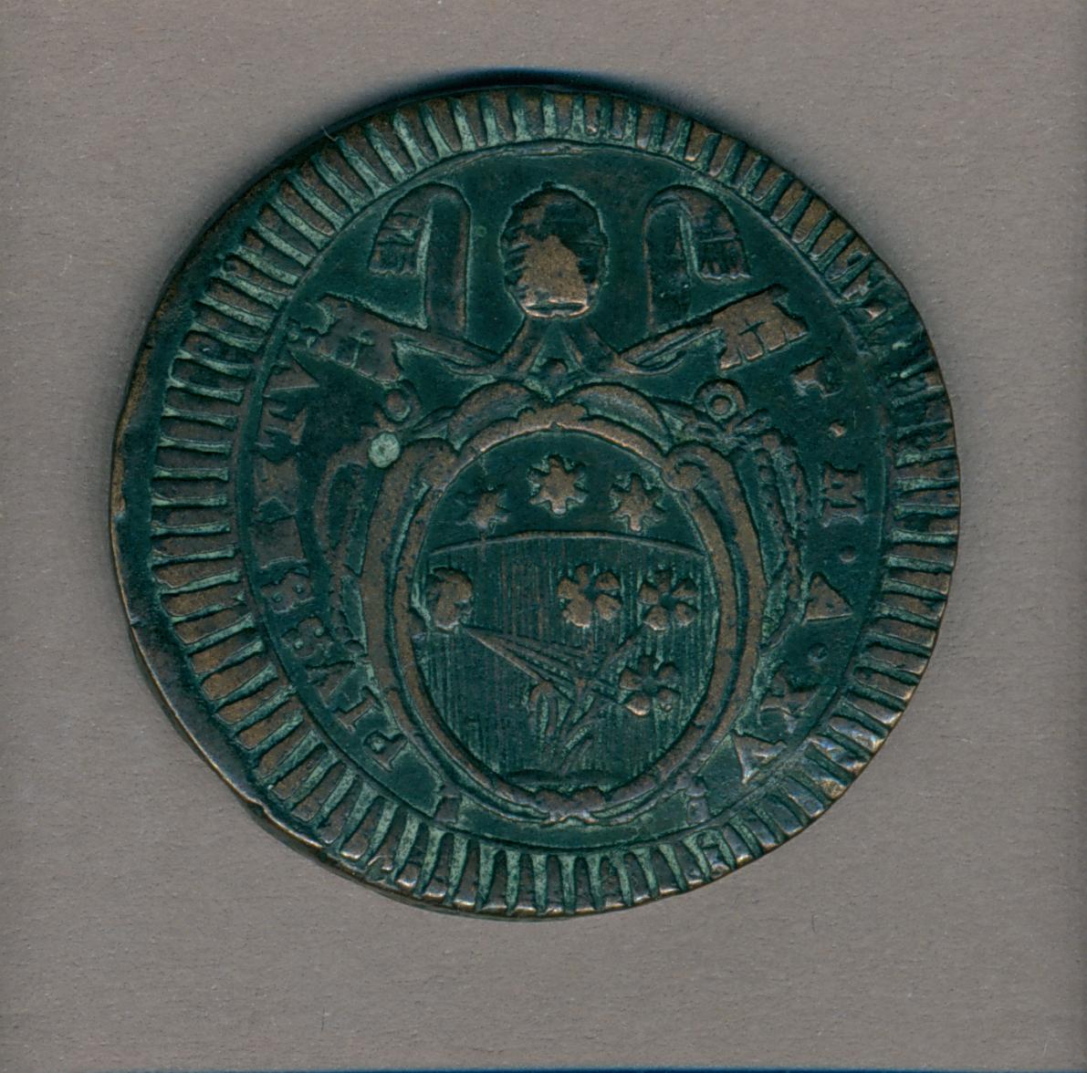 Baiocco met pauselijk wapen Pius VI (1775-1799), kz. munteenheid