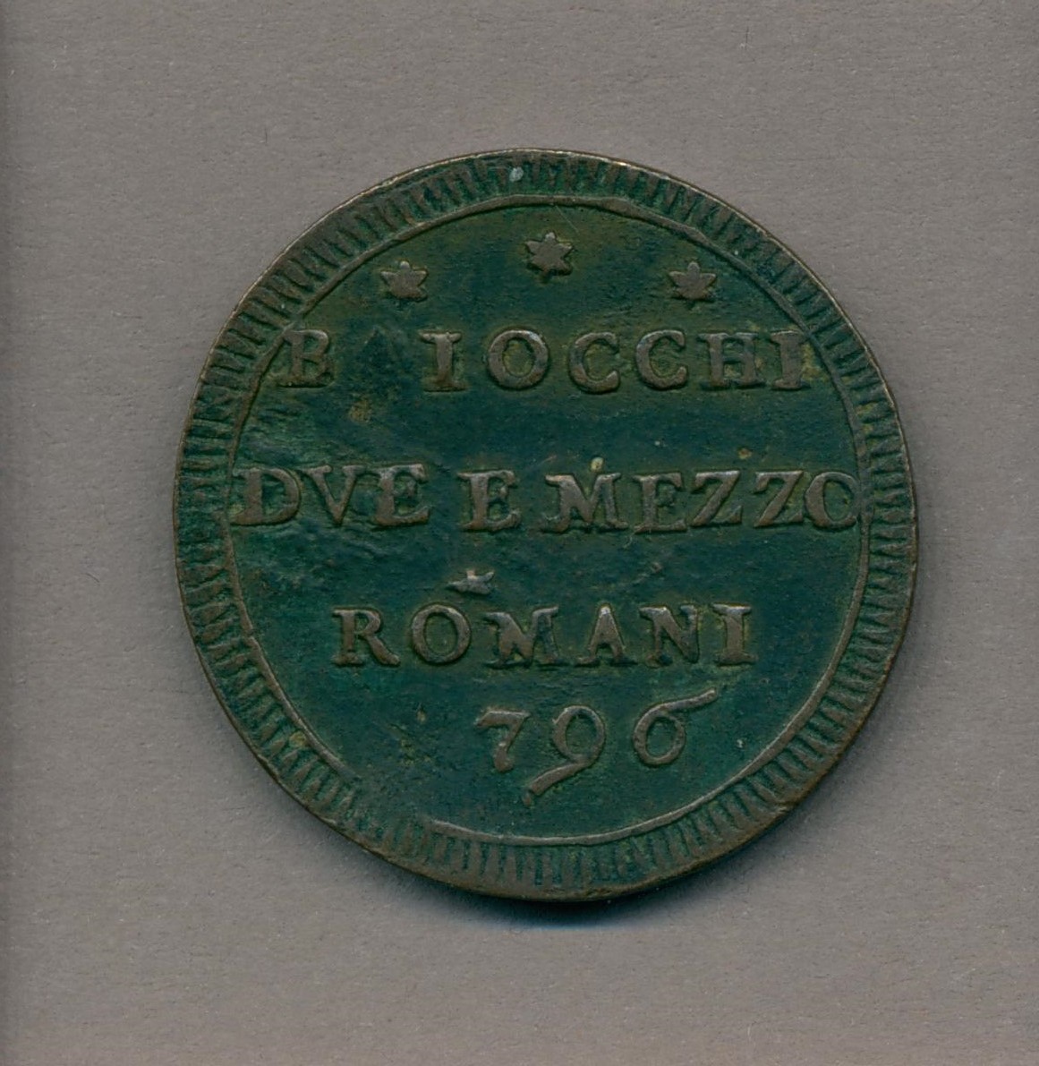 Tweeëneenhalve baiocchi paus Pius VI (1775-1799) met H. Petrus, kz. munteenheid