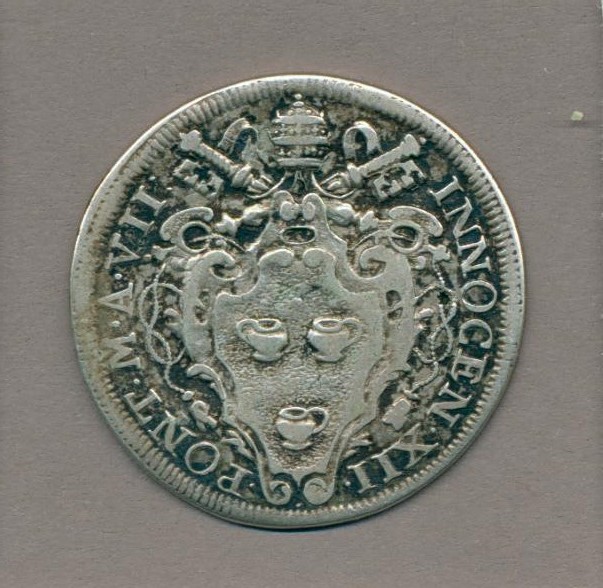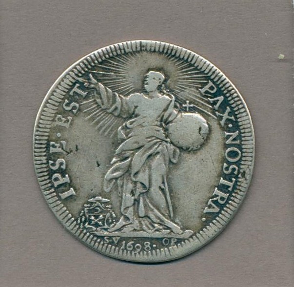 Testone met pauselijk wapen paus Innocentius XII (1691-1700), kz. Christus Salvator Mundi