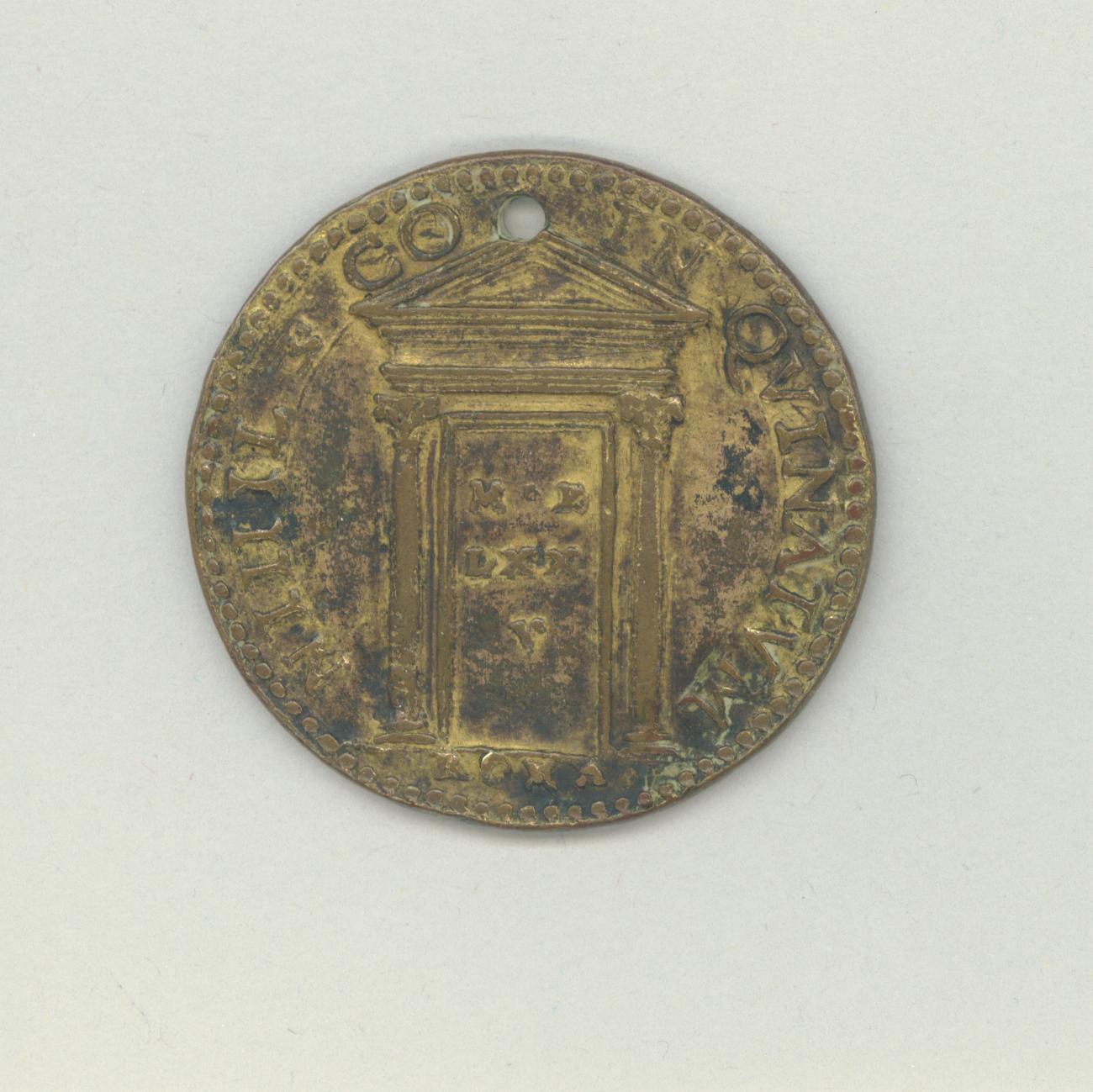 Pauspenning met portret paus Gregorius XIII (1572-1585), met "... A III", kz. H. Deur